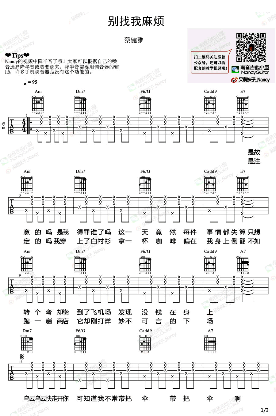 火狐体育官网iOS下载-手机APP下载-易唱网echangwang.com 时间:2017-07-15 来源:南音吉他小屋 点击:次 别找我麻烦吉他谱,蔡健雅演唱,六线谱编配,三张图片谱,别找我麻烦吉他弹唱教学视频。Nancy老师视频中用了降半音调弦,适合女生弹唱,男生CAPO1-2品,大家按照自己的嗓音是否选择降半音或是变调夹。