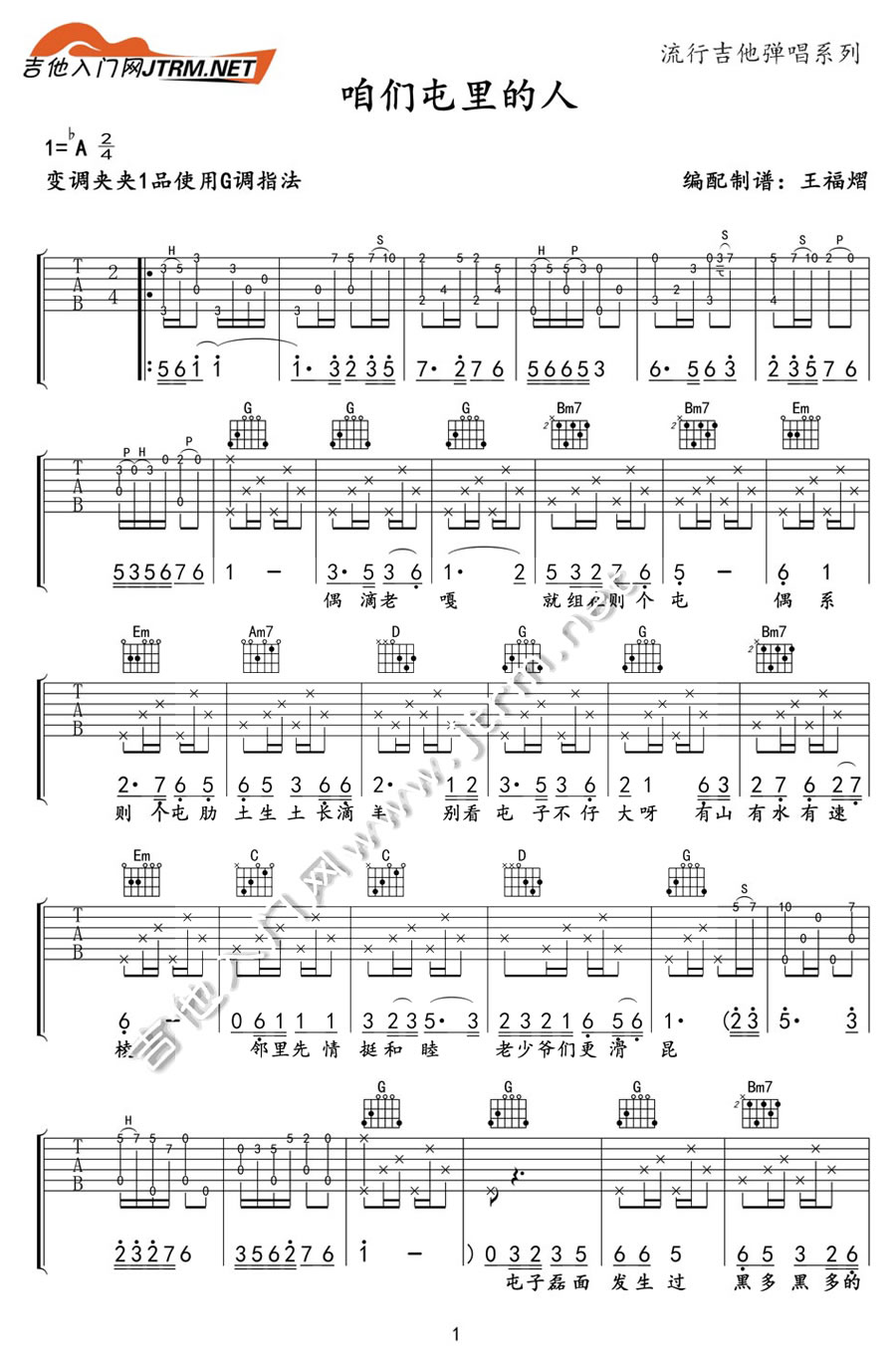 咱们屯里的人吉他谱_粤语音译歌词_简单版弹唱谱 时间:2016-10-12 来源:王福熠 点击:次 咱们屯里的人吉他谱,原调降A,变调夹夹一品,使用G调指法,咱们屯里的人吉他弹唱谱,粤语版音译歌词,相信很多人都被电影《夏洛特烦恼》里面的这魔性的旋律洗脑了,送上罗凯楠演唱的这首充满东北欧美范儿的歌曲六线谱,感谢您关注易唱网。
