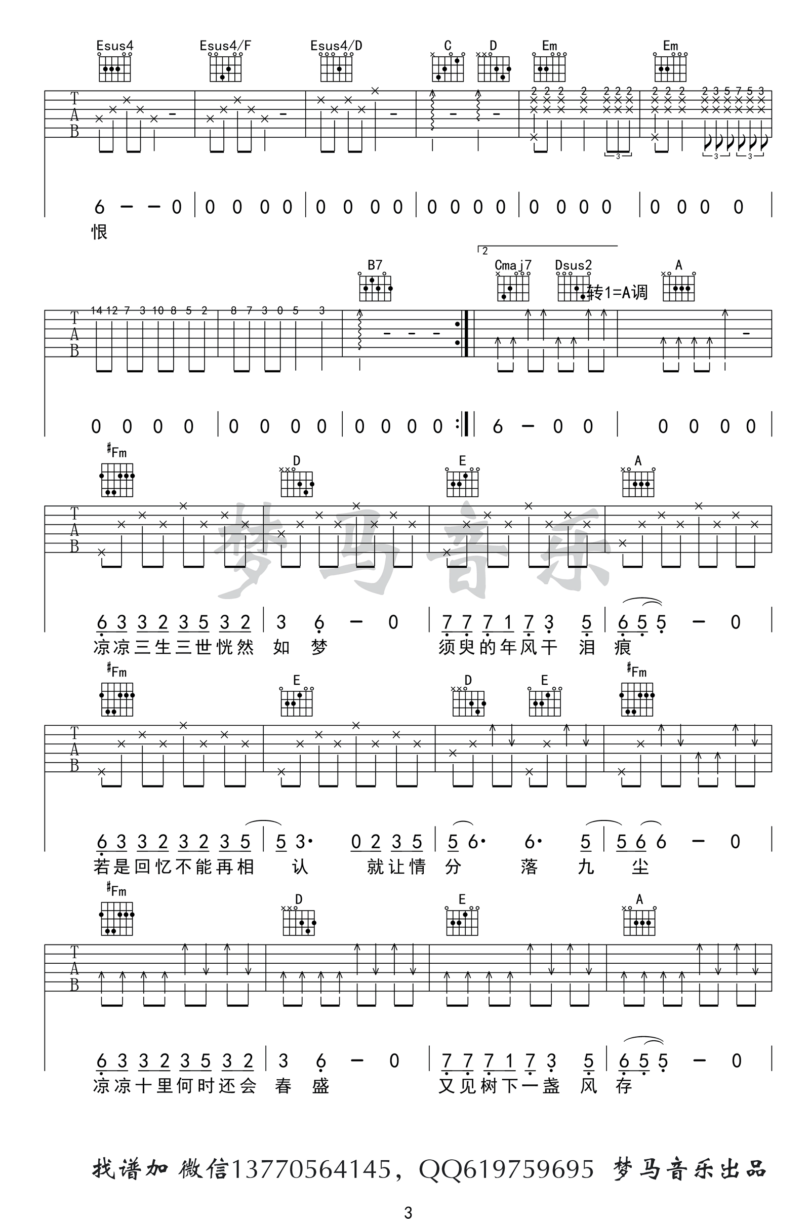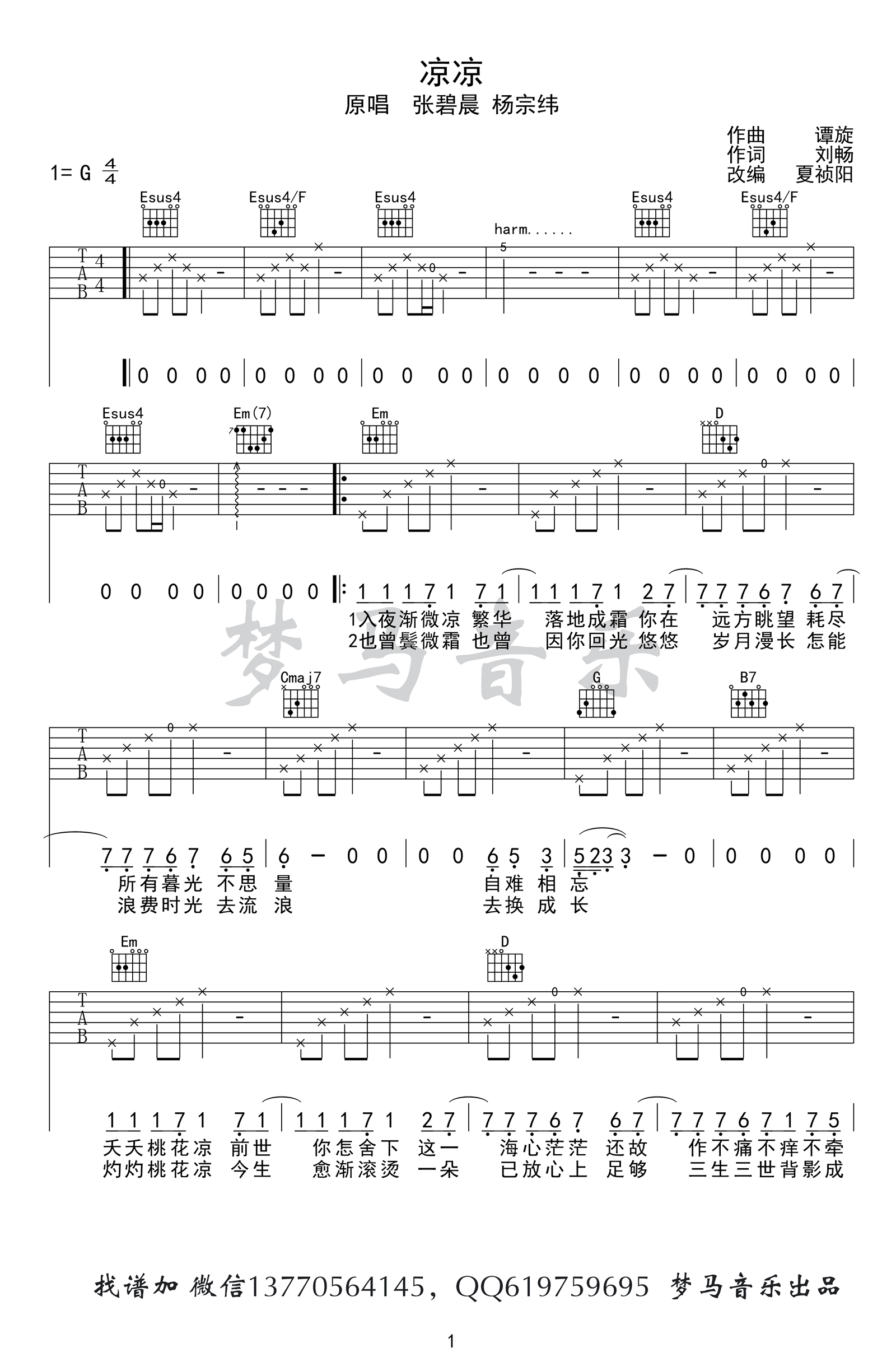 凉凉吉他谱 张碧晨 G调高清弹唱谱 图片谱完整版 时间:2017-05-18 来源:梦马音乐 点击:次 凉凉吉他谱,G调弹唱谱,张碧晨杨宗纬演唱,电视剧《三生三世十里桃花》片尾曲。凉凉吉他六线谱,高清弹唱谱完整版,共四张图片谱。感谢夏祯阳改编,易唱网整理上传。