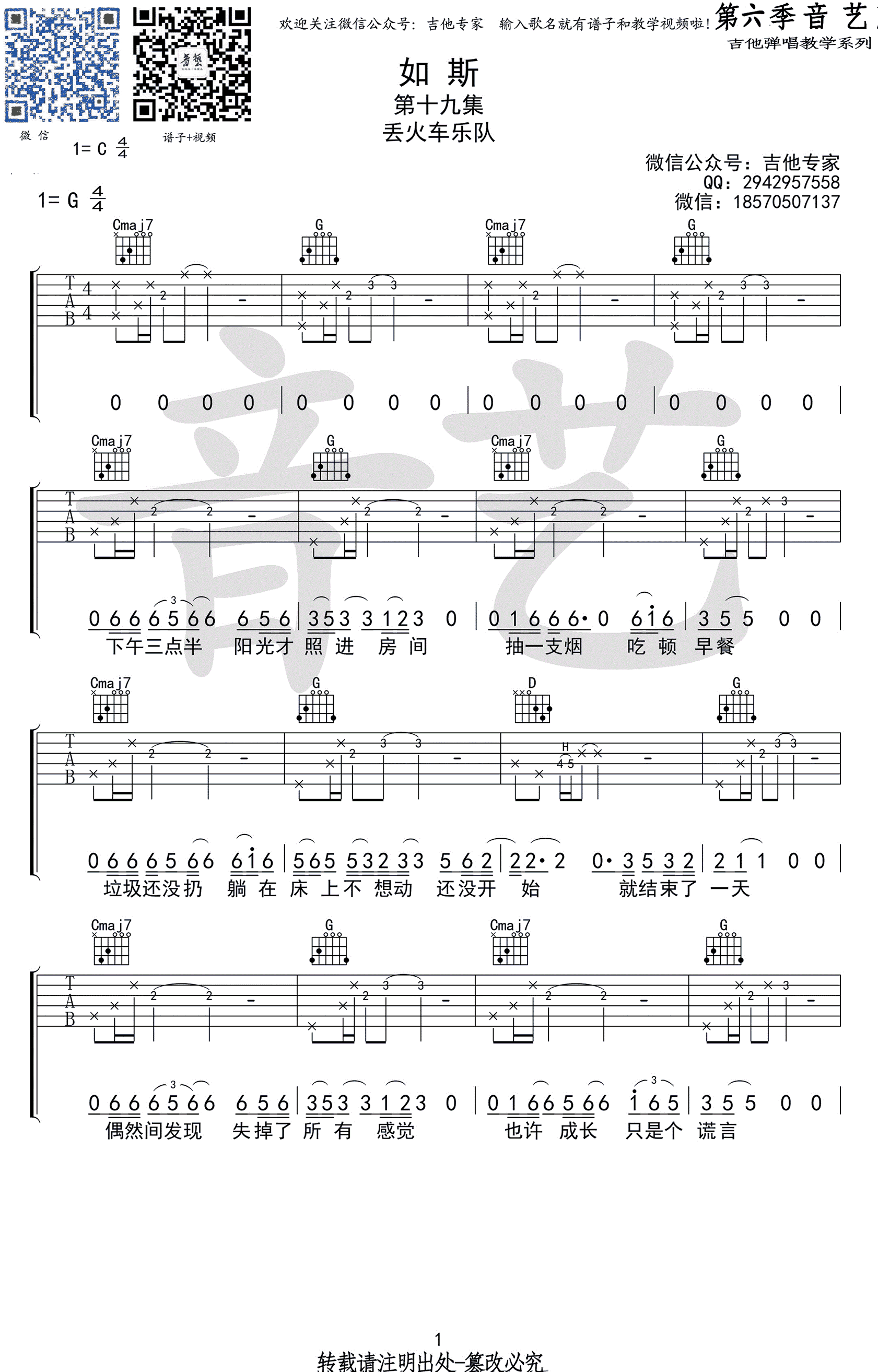 如斯吉他谱 丢火车乐队 G调弹唱谱 图片谱高清版 时间:2017-05-22 来源:音艺吉他 点击:次 丢火车乐队《如斯》吉他谱,G调高清弹唱谱,如斯六线谱,完整版四张图片谱子。一首好听的歌曲,也是丢火车乐队的一首代表作品,音艺吉他版版编配,易唱网分两页上传分享给琴友们。 共2页: 上一页12下一页