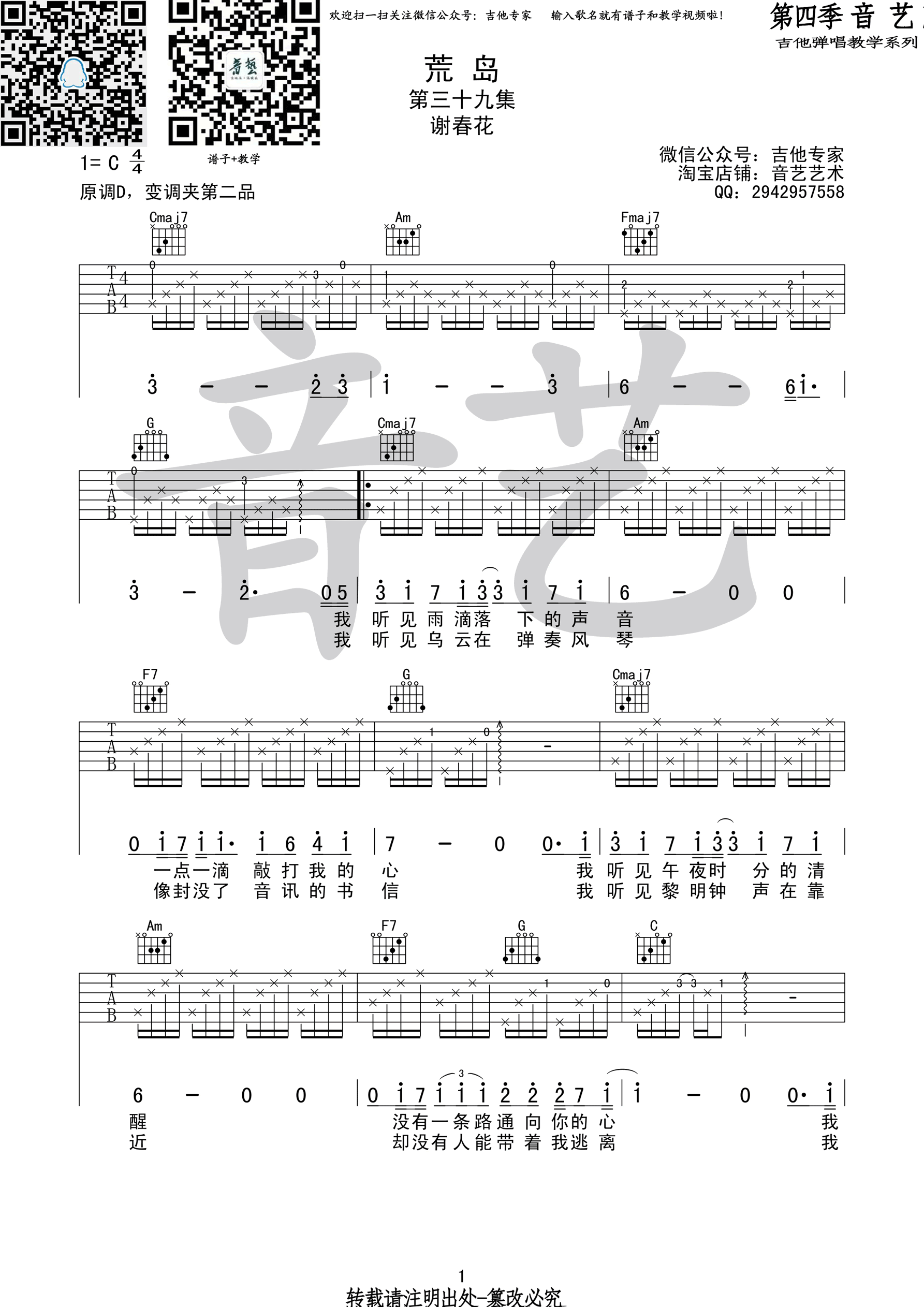 ag网址-手机APP下载-易唱网echangwang.com 时间:2017-05-26 来源:音艺吉他 点击:次 谢春花《荒岛》吉他谱,六线谱编配,原调D,选调C,变调夹夹二品。谢春花的一首民谣歌曲,荒岛吉他弹唱谱,高清图片谱。完整版共四张图片谱例分两页展示。 共2页: 上一页12下一页