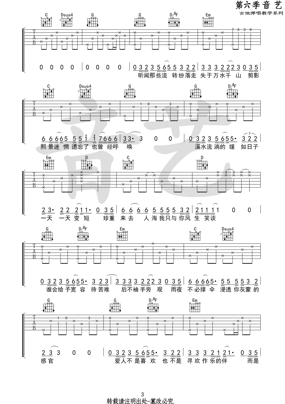 房东的猫《短叹》吉他谱 G调弹唱谱 原版六线谱 时间:2017-05-30 来源:音艺吉他 点击:次 短叹吉他谱,房东的猫演唱,短叹六线谱,原调#G,选调G,变调夹夹第一品,高清图片谱共四张谱例,房东的猫一首好听的民谣歌曲,感谢艺音吉他出品,易唱网上传分享。