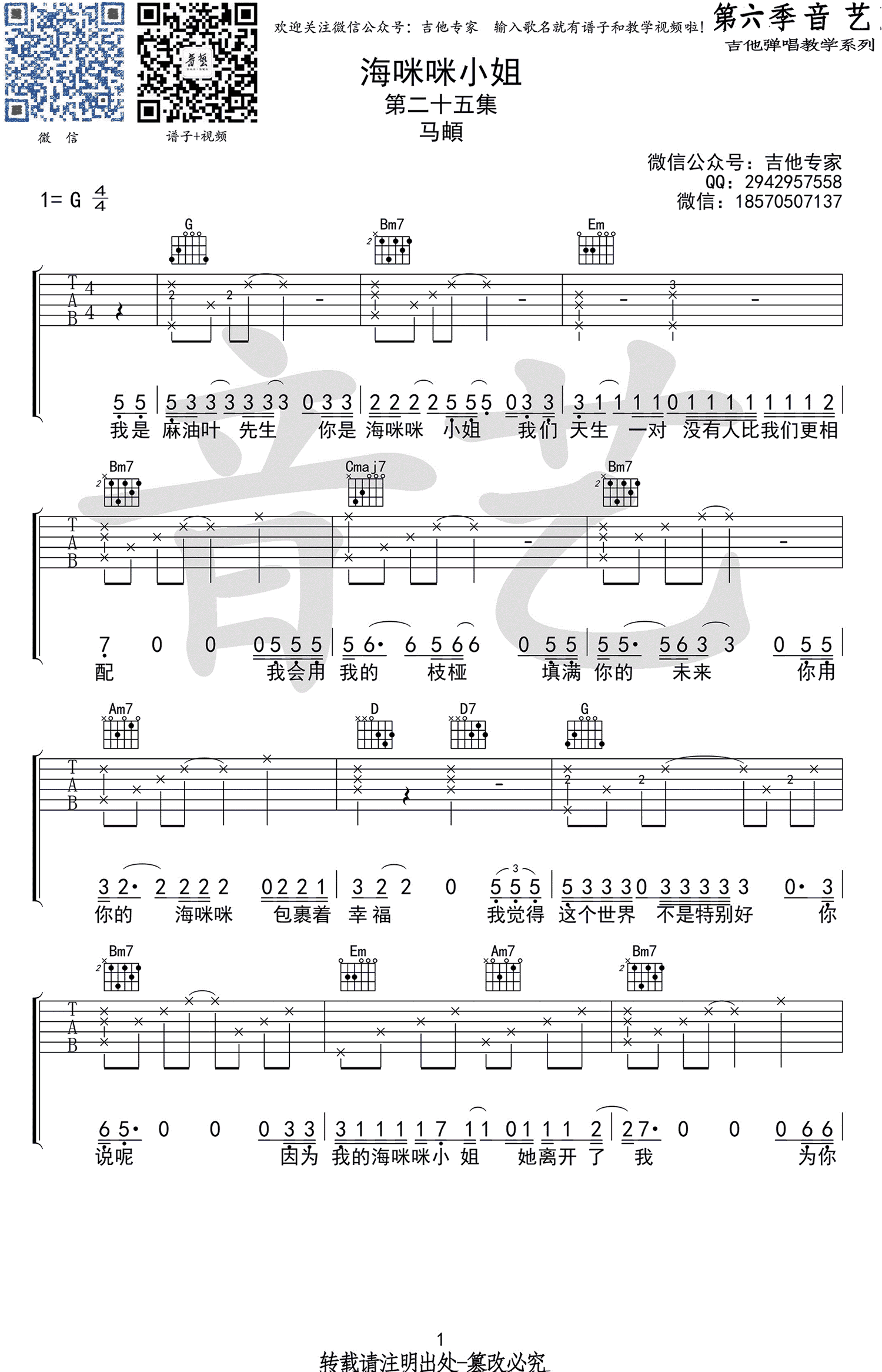 海咪咪小姐吉他谱 马頔 G调六线谱 弹唱谱高清版 时间:2017-06-03 来源:音艺吉他 点击:次 马頔 海咪咪小姐吉他谱,G调弹唱谱,完整图片谱共四张谱例,海咪咪小姐吉他六线谱,高清图片谱。音艺吉他编配,马頔吉他谱易唱网推荐收藏。 共2页: 上一页12下一页