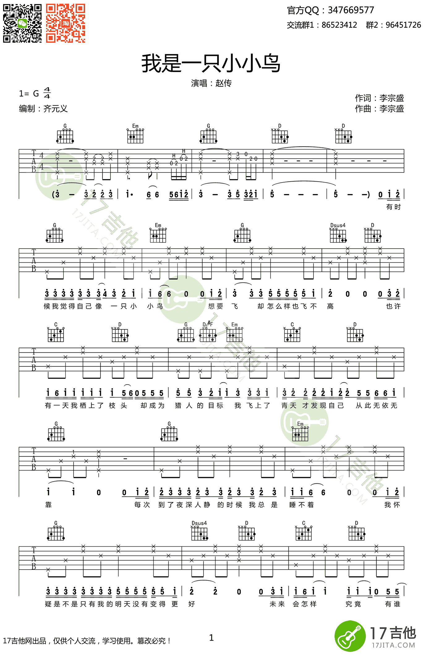 bob综合体育网页版登录-手机APP下载-易唱网echangwang.com 时间:2017-06-03 来源:齐元义 点击:次 赵传 我是一只小小鸟吉他谱。G调指法,六线谱三张图片谱例。我是一只小小鸟吉他弹唱谱,高清图片谱。李宗盛词曲创作,赵传的经典代表歌曲,易唱网上传推荐。