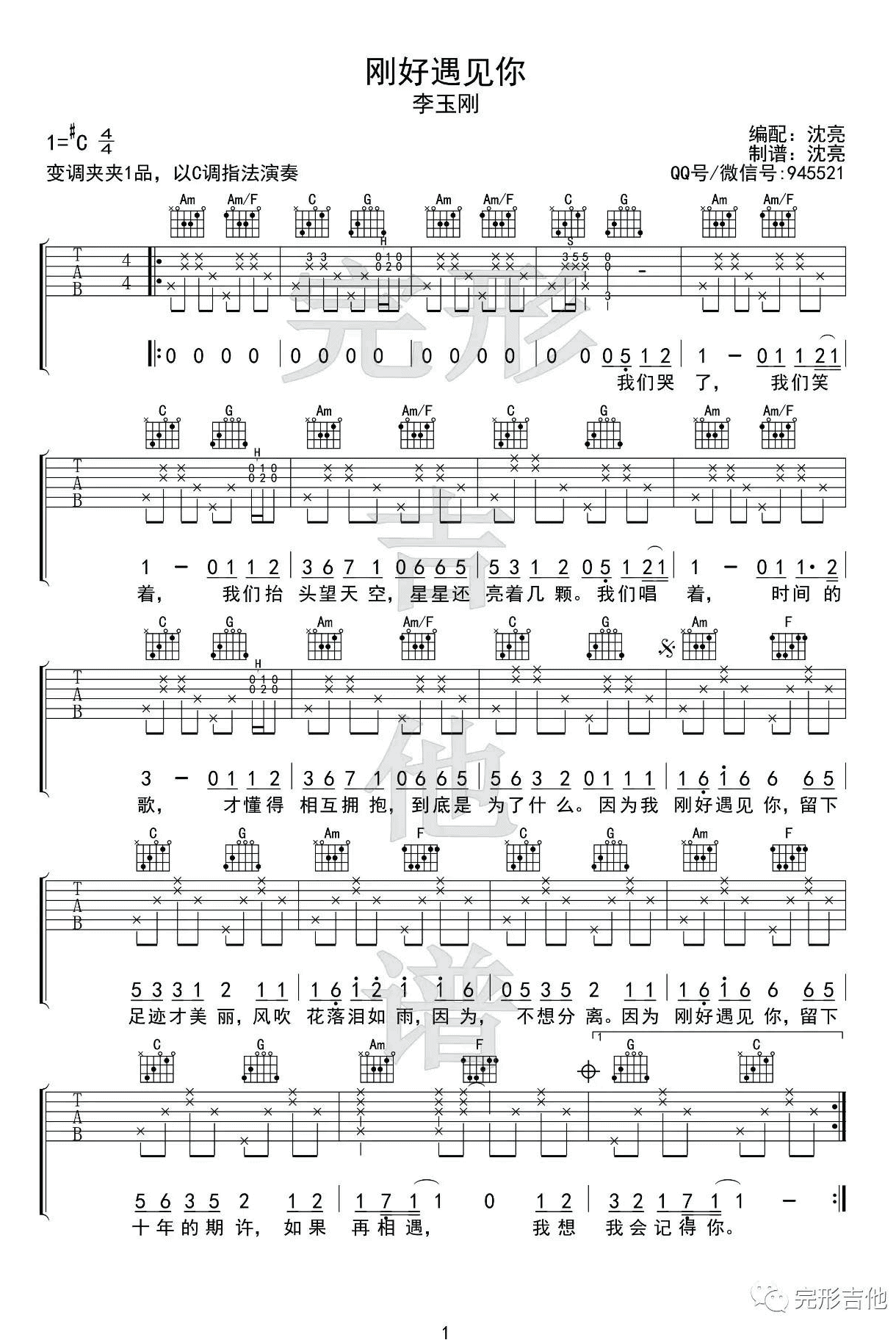 刚好遇见你吉他谱 李玉刚 C调版本 弹唱视频演示 时间:2017-06-05 来源:完形吉他 点击:次 李玉刚 刚好遇见你吉他谱,C调指法,CAPO夹一品,六线谱高清图片版。刚好遇见你吉他弹唱谱,完形吉他编配,并给琴友们带来《刚好遇见你》吉他弹唱视频,大家参考视频演示练习。