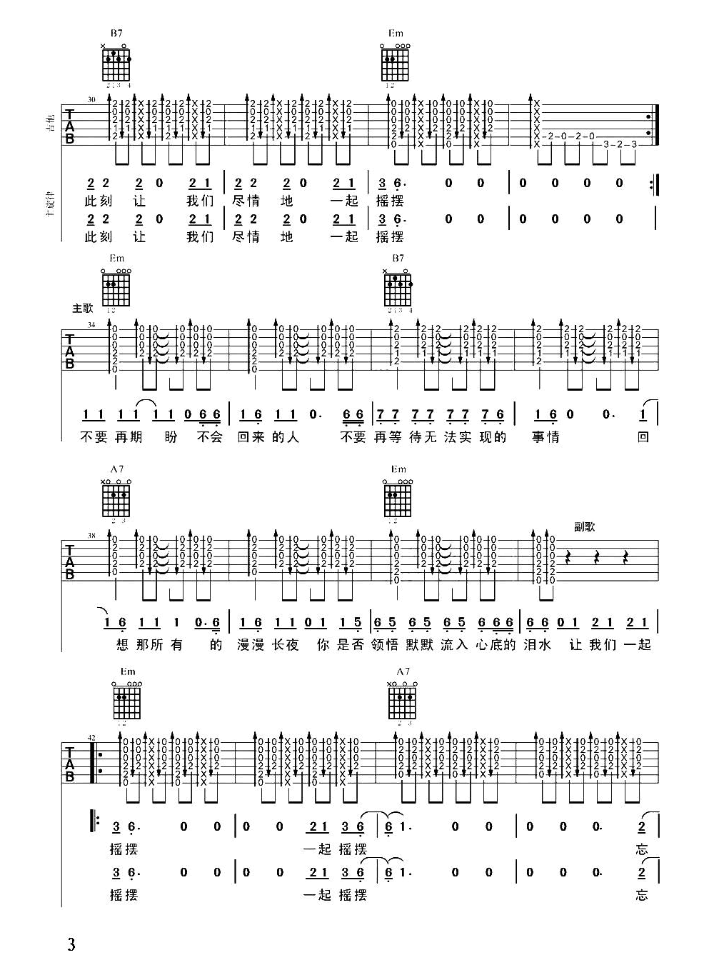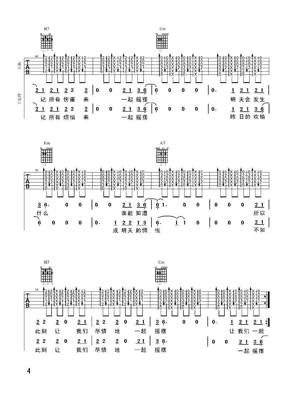 一起摇摆吉他谱 汪峰 G调弹唱谱 完整版图片谱(2) 时间:2017-06-05 来源:大伟吉他 点击:次 汪峰一起摇摆吉他谱,六线谱第3-5张图片谱例。一首律动感强烈的歌曲,让大家忘记即将分离的惆怅,尽情享受这快乐时光。 共2页: 上一页12下一页