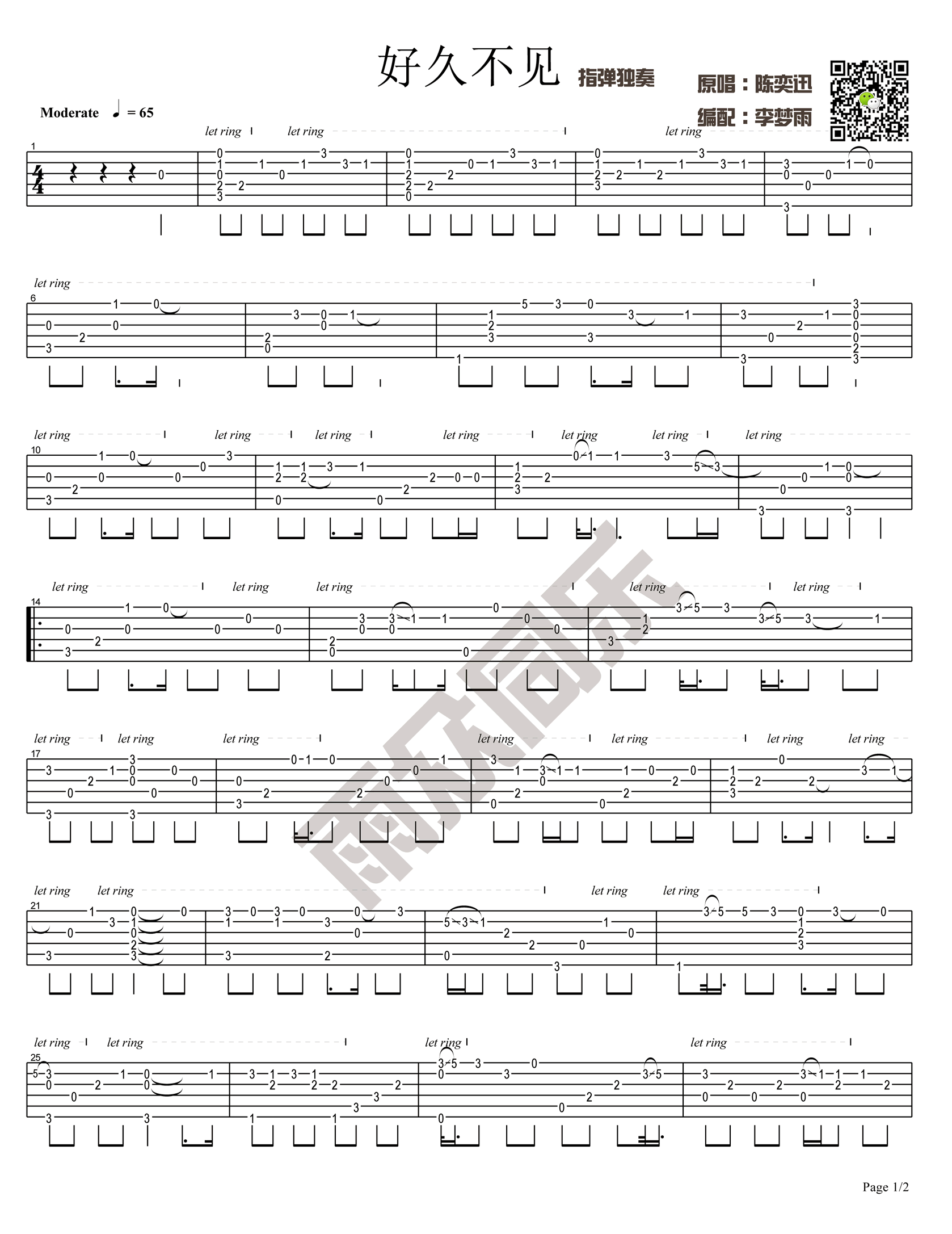 好久不见指弹谱 陈奕迅 吉他独奏谱 高清图片谱 时间:2017-06-06 来源:雨众同乐 点击:次 陈奕迅 好久不见吉他谱指弹版,六线谱格式,两张图片谱高清版。好久不见吉他独奏谱。李梦雨编配,李梦雨编配,易唱网推荐。
