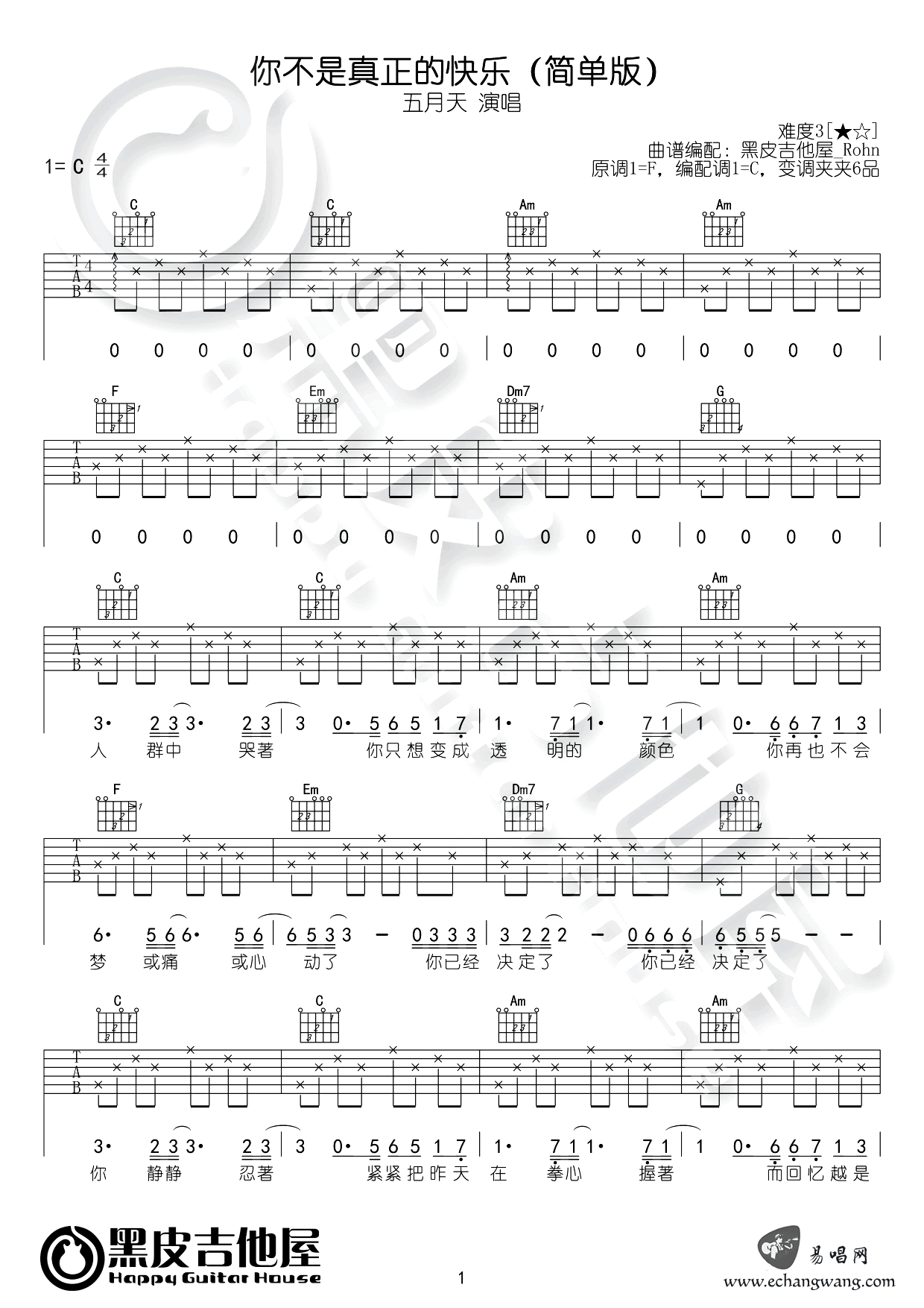 bodog最新地址-手机APP下载-易唱网echangwang.com 时间:2017-06-09 来源:黑皮吉他屋 点击:次 五月天《你不是真正的快乐》吉他谱,原调F,变调夹夹六品,C调指法简单版,你不是真正的快乐吉他弹唱谱,高清图片六线谱,ROHN编配,易唱网上传。