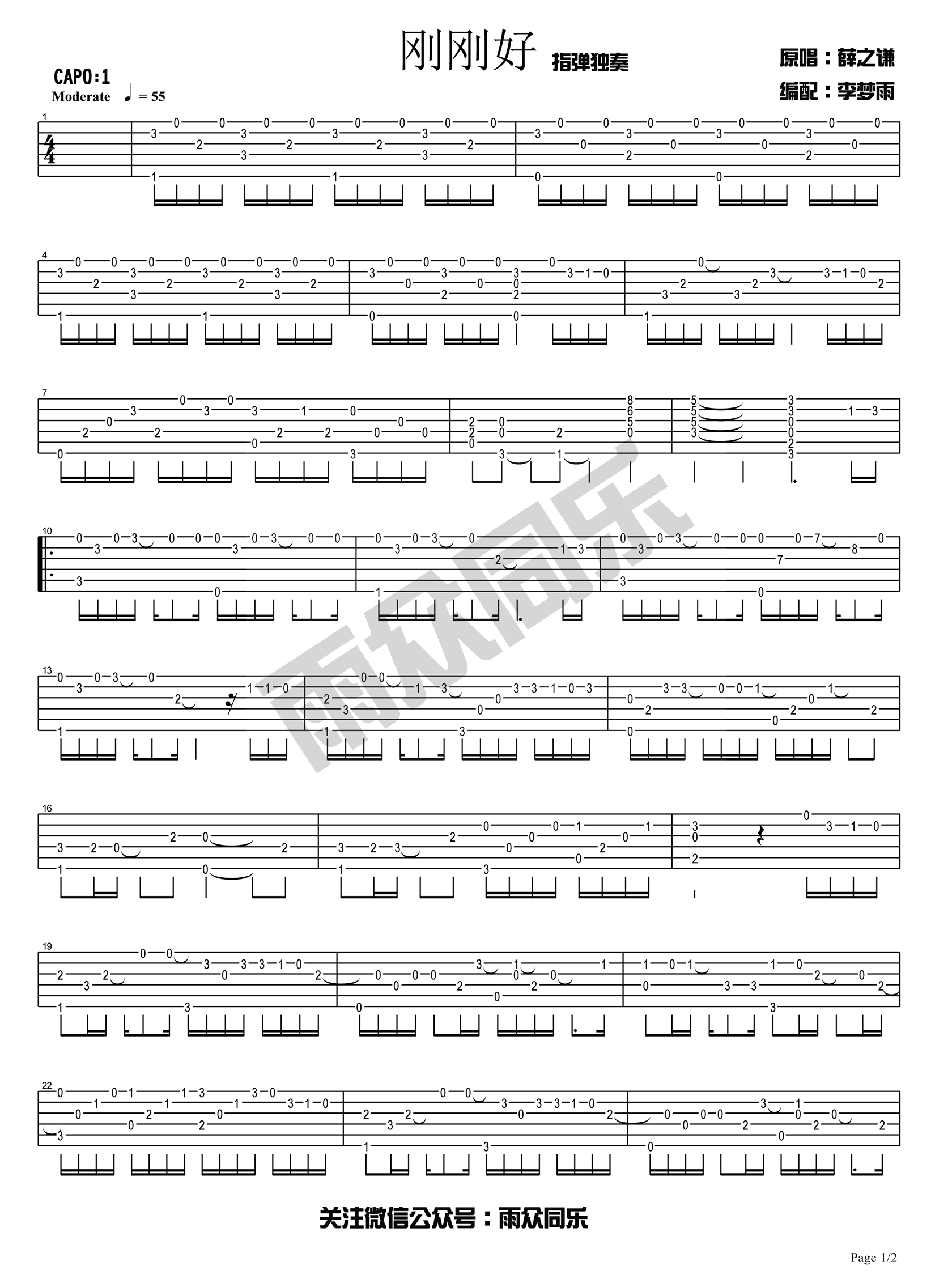 bt365体育官网体-手机APP下载-易唱网echangwang.com 时间:2017-06-15 来源:雨众同乐 点击:次 薛之谦《刚刚好》指弹吉他谱,CAPO夹一品,刚刚好吉他指弹独奏谱,图片谱高清版,感谢李梦雨编配,易唱网上传。《刚刚好》情感细腻深情款款,旋律层次鲜明,唯美伤感,句句感人。