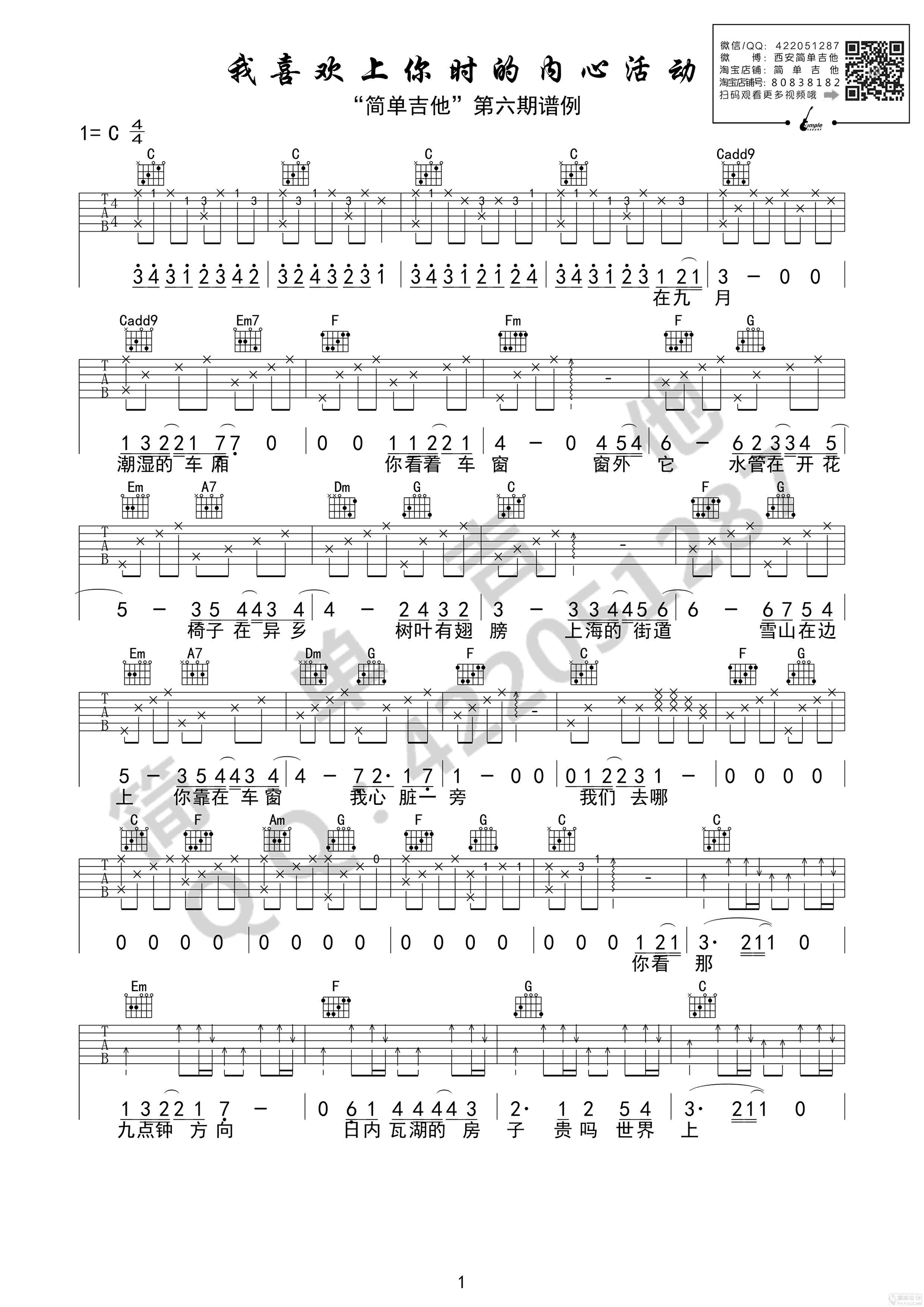 我喜欢上你时的内心活动 吉他谱C调 陈绮贞 高清弹唱谱 时间:2017-06-19 来源:简单吉他 点击:次 陈绮贞《我喜欢上你时的内心活动》吉他谱,C调指法简单吉他编配,《喜欢你》电影主题曲,我喜欢上你时的内心活动吉他弹唱谱,高清图片六线谱。易唱网为琴友们上传。一首清新的歌曲,一起来感受青春里的那些美好与哀愁吧。