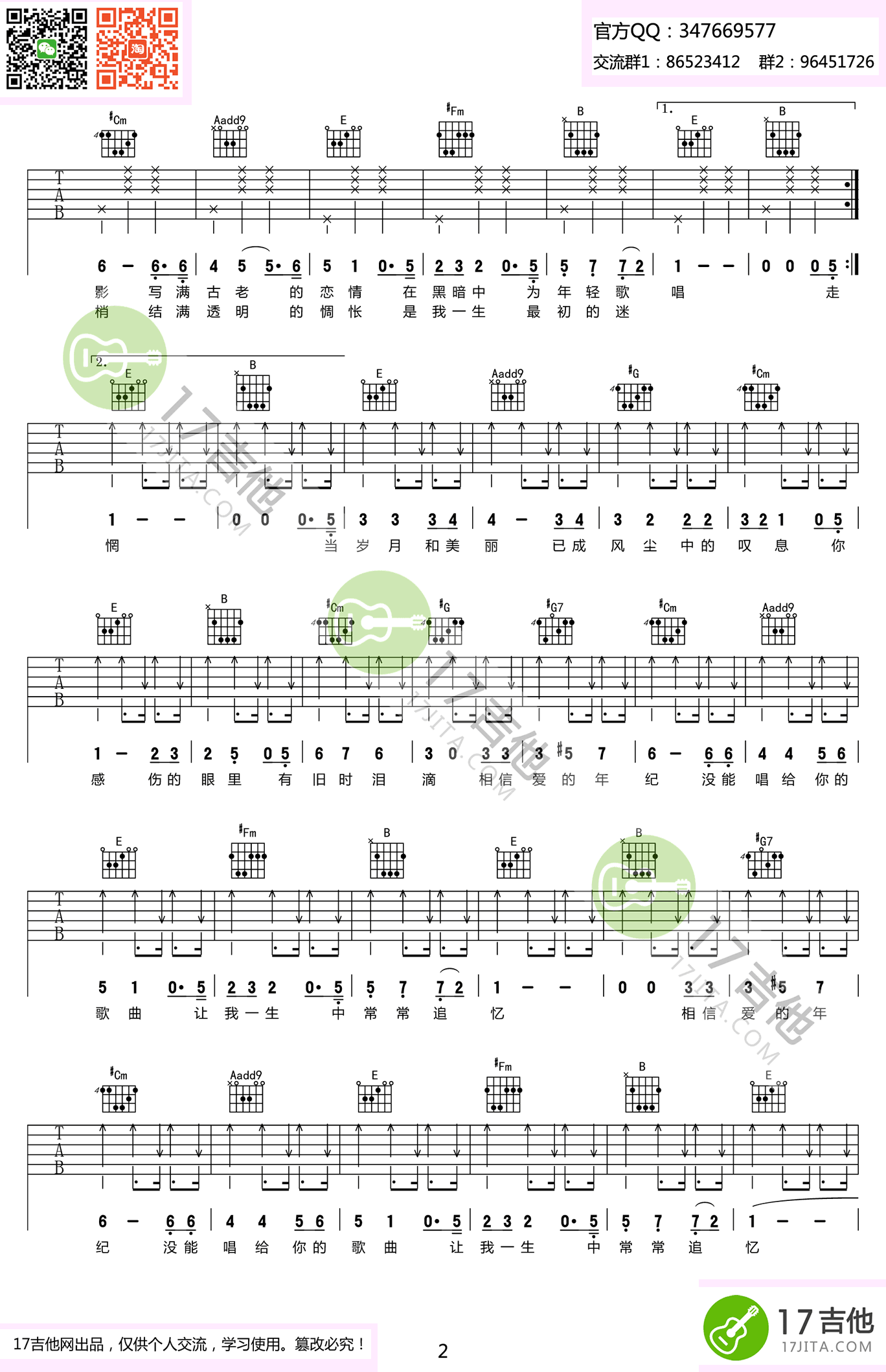 恋恋风尘吉他谱 双吉他版 老狼 高清弹唱谱 时间:2017-06-22 来源:齐元义 点击:次 恋恋风尘吉他谱,双吉他版本,E调指法,恋恋风尘六线谱,E调高清图片谱,双吉他弹唱谱。高晓松经典民谣歌曲,歌曲已经不在只是描写校园的恋情和一去不返的青春,而是生命的美轮美奂、变幻无常。