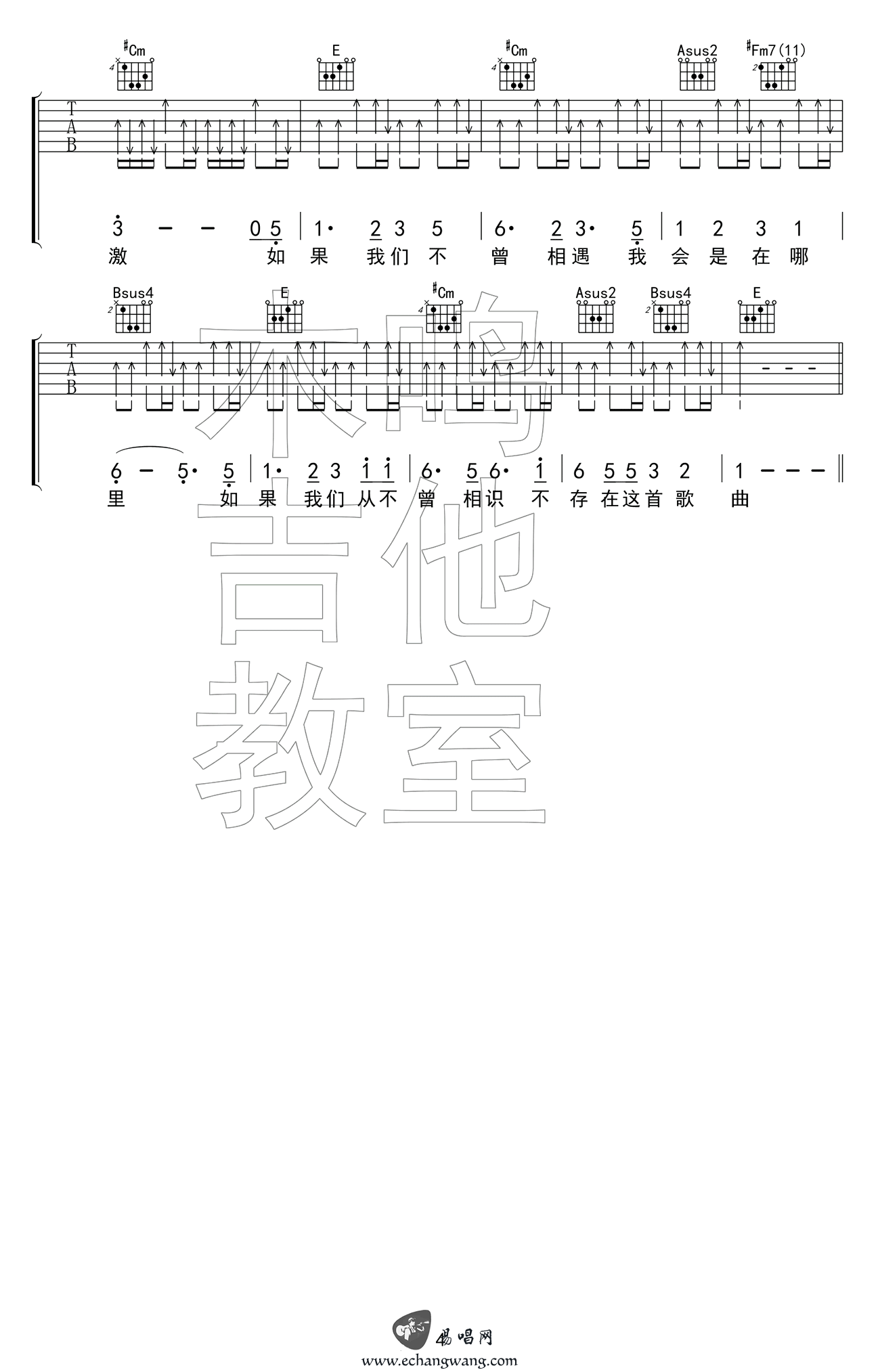 如果我们不曾相遇吉他谱 五月天 E调 弹唱谱六线谱(2) 时间:2017-06-24 来源:木鸣吉他教室 点击:次 如果我们不曾相遇吉他谱,五月天《自传》专辑调影视歌曲,当前页面显示曲谱的后面两张图片谱。五月天唱出的就是你我的青春,如果我们不曾相遇,你又会在哪里?...相遇是奇迹,分离是未完待续。 共2页: 上一页12下一页