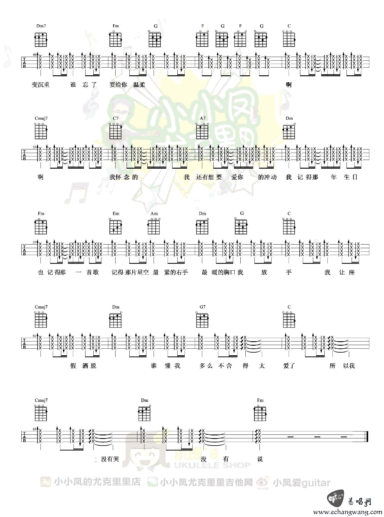 我怀念的尤克里里谱 孙燕姿 我怀念的ukulele谱 时间:2017-06-26 来源:小小凤工作室 点击:次 孙燕姿《我怀念的》ukulele谱,C调版本女生调,男生可以夹3品变调夹。我怀念的尤克里里谱,四线谱高清图片谱,小小凤工作室出品,易唱网整理分享。如果说原唱唱的是恋人分手后的留恋与伤感,林俊杰男生版则唱出了多年后的释怀与洒脱。