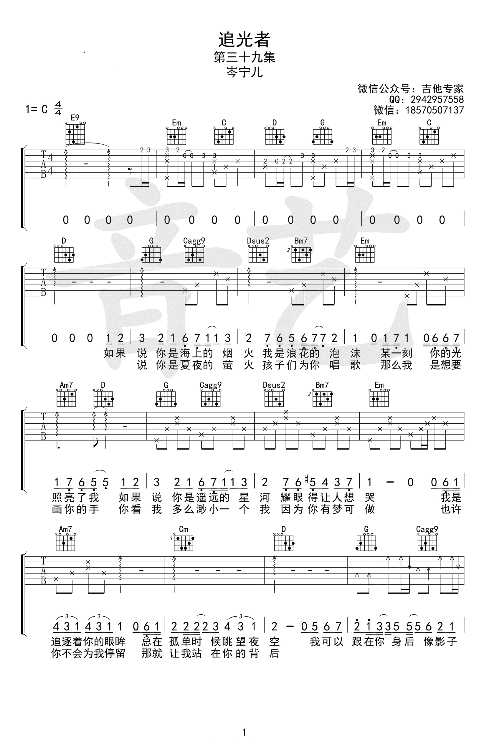 OB欧宝体育官网入口-手机APP下载-易唱网echangwang.com 时间:2017-07-06 来源:吉他专家 点击:次 岑宁儿追光者吉他谱,C调编配,高清弹唱谱,两张图片谱。《夏至未至》电视剧插曲,追光者六线谱,曲谱来源吉他专家,易唱网收藏推荐。歌曲唱出立夏对傅小司默默于在心底的崇拜之情,婉转的歌词诉说心声“我可以跟在你身后,像影子追着光梦游,我可以等在这路口,不管你会不会经过”。每一个女孩都是立夏,生命里或许曾经出现一位所倾慕的人。