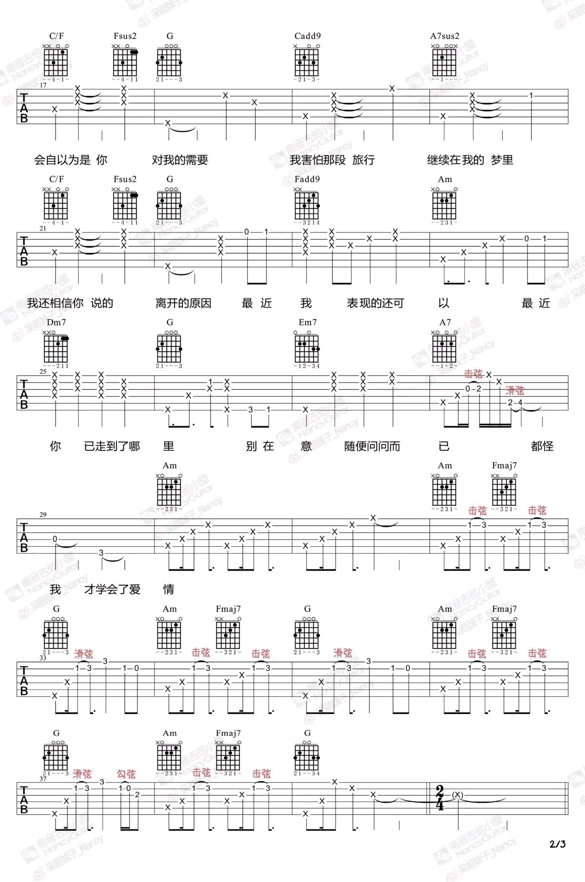 我害怕吉他谱 高清六线谱 薛之谦《我害怕》吉他弹唱教学 时间:2017-07-09 来源:NANCY 点击:次 薛之谦我害怕吉他谱,这首歌曲和弦很简单,重点练习击弦和滑弦的组合,琴友们可以跟随弹唱教学视频练习节拍,贯穿全曲的附点节奏也有详细讲解。变调夹的位置,原歌是标准调音,可以根据自己的嗓音调整,夹变调夹升高,或降半音、降全音。