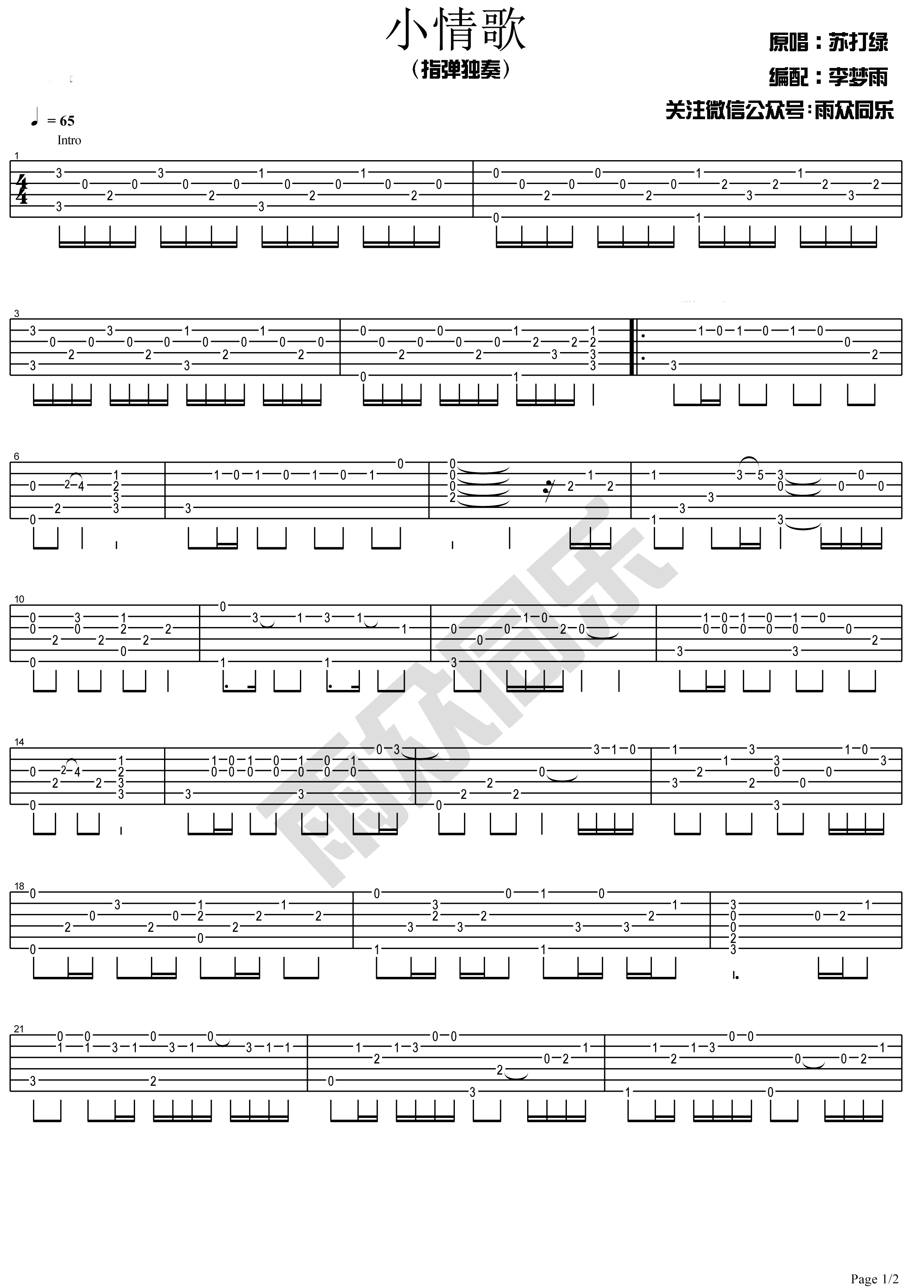 小情歌指弹谱 苏打绿《小情歌》吉他独奏谱 高清图片谱 时间:2017-07-26 来源:雨众同乐 点击:次 小情歌指弹吉他谱,两张高清图片谱,根据苏打绿经典歌曲改编,小情歌吉他独奏谱,六线谱编配,感谢雨众同乐李梦雨分享。易唱网为琴友们整理上传。