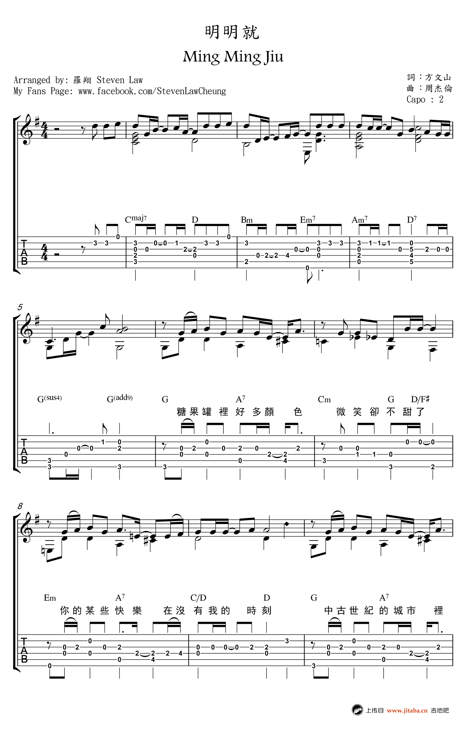 明明就指弹谱 周杰伦《明明就》吉他独奏谱 图片谱 时间:2017-08-03 来源:罗翔 点击:次 周杰伦《明明就》吉他谱指弹版,图片谱高清版,周杰伦的一首经典歌曲,明明就吉他独奏谱,感谢罗翔指弹编配,并提供《明明就》吉他演奏视频。易唱网上传分享。