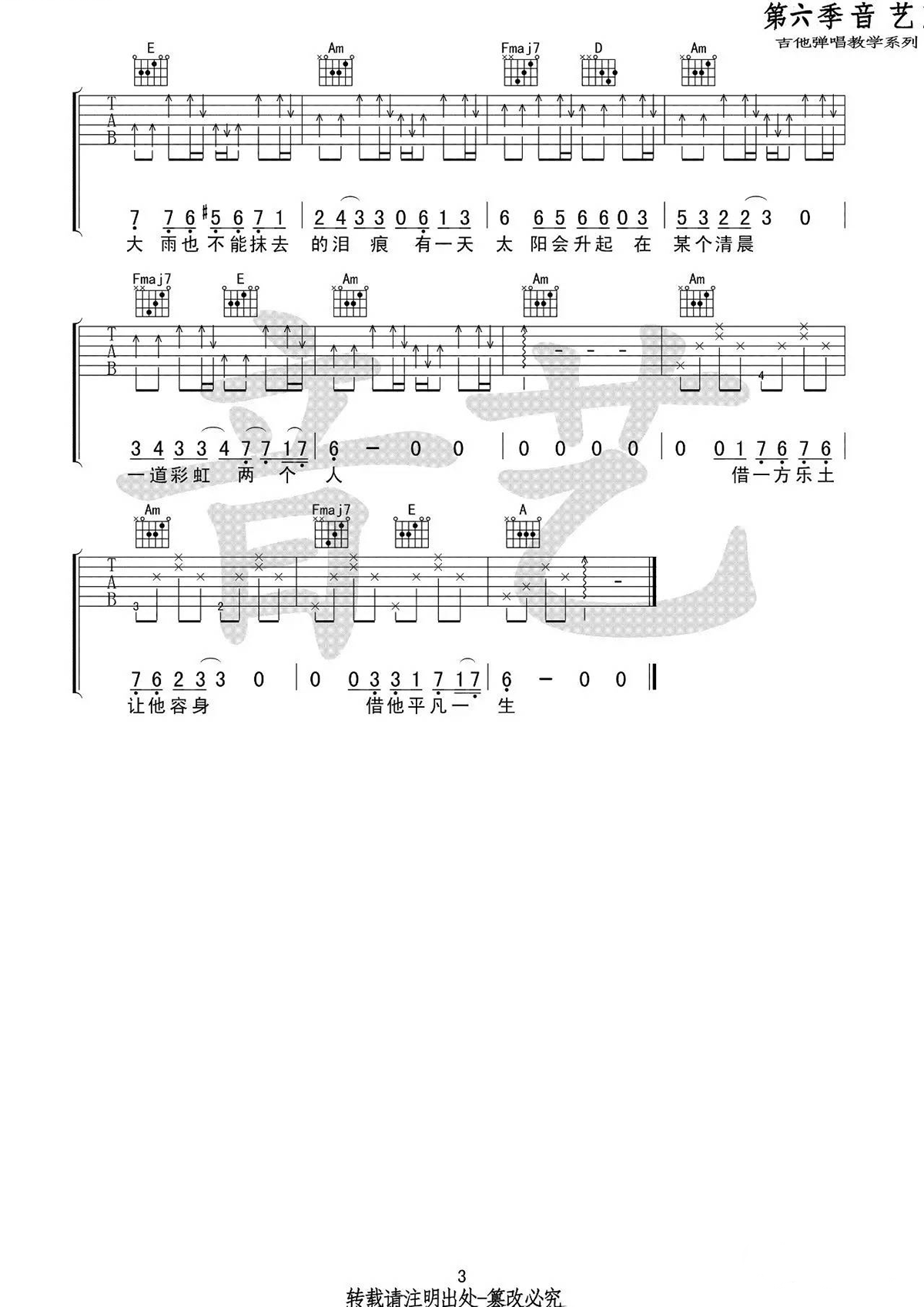 《借》吉他谱 毛不易 C调弹唱谱 简单版 高清图片谱 时间:2017-09-05 来源:音艺 点击:次 《借》吉他谱,毛不易借弹唱谱,高清图片谱。原调F,变调夹5品。C调版本编配,更易上手适合初学者。感谢音艺的提供和分享,易唱网推荐收藏。 明日之子第11期毛不易的借,听了令人有久久无法轻易消逝的伤怀和感动。喜欢这首歌曲的琴友们练习起来吧。