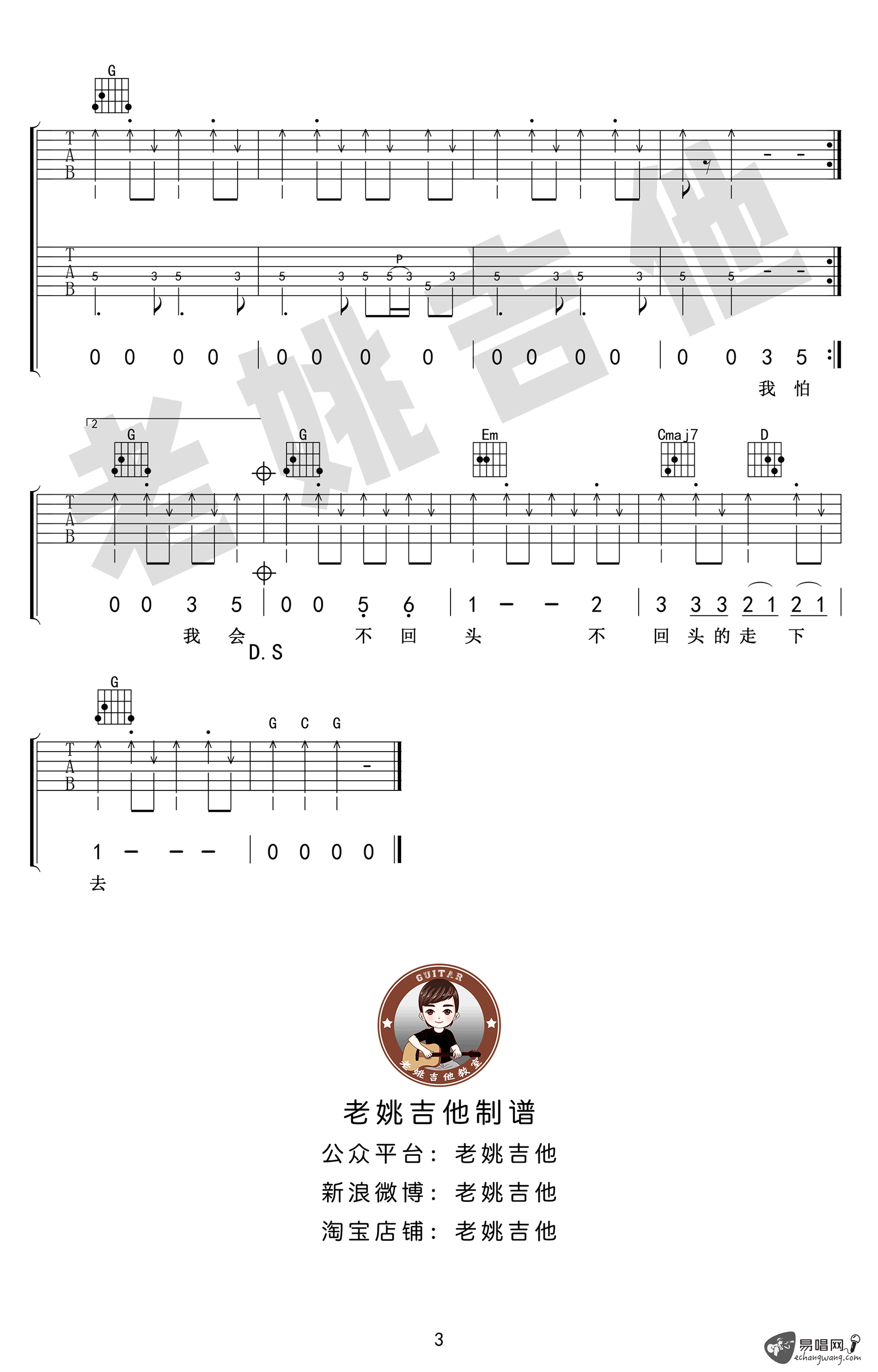 再见吉他谱 张震岳 G调弹唱谱 《再见》吉他教学视频 时间:2018-07-05 来源:老姚吉他 点击:次 再见吉他谱,张震岳作词作曲并演唱的歌曲,《再见》弹唱谱,高清弹唱图片谱,原调#F,选用G调,降半音调弦,感谢老姚吉他编配,并提供吉他弹唱教学视频,欢迎吉他爱好者收藏分享。 这首歌有种莫名的愁绪,叫作伤怀,我怕我没有机会,跟你说一声再见,因为也许就再也见不到你,你听是不是很伤感,那一句再见,我们都知道再见就是再也不见。 《再见》吉他教学视频: