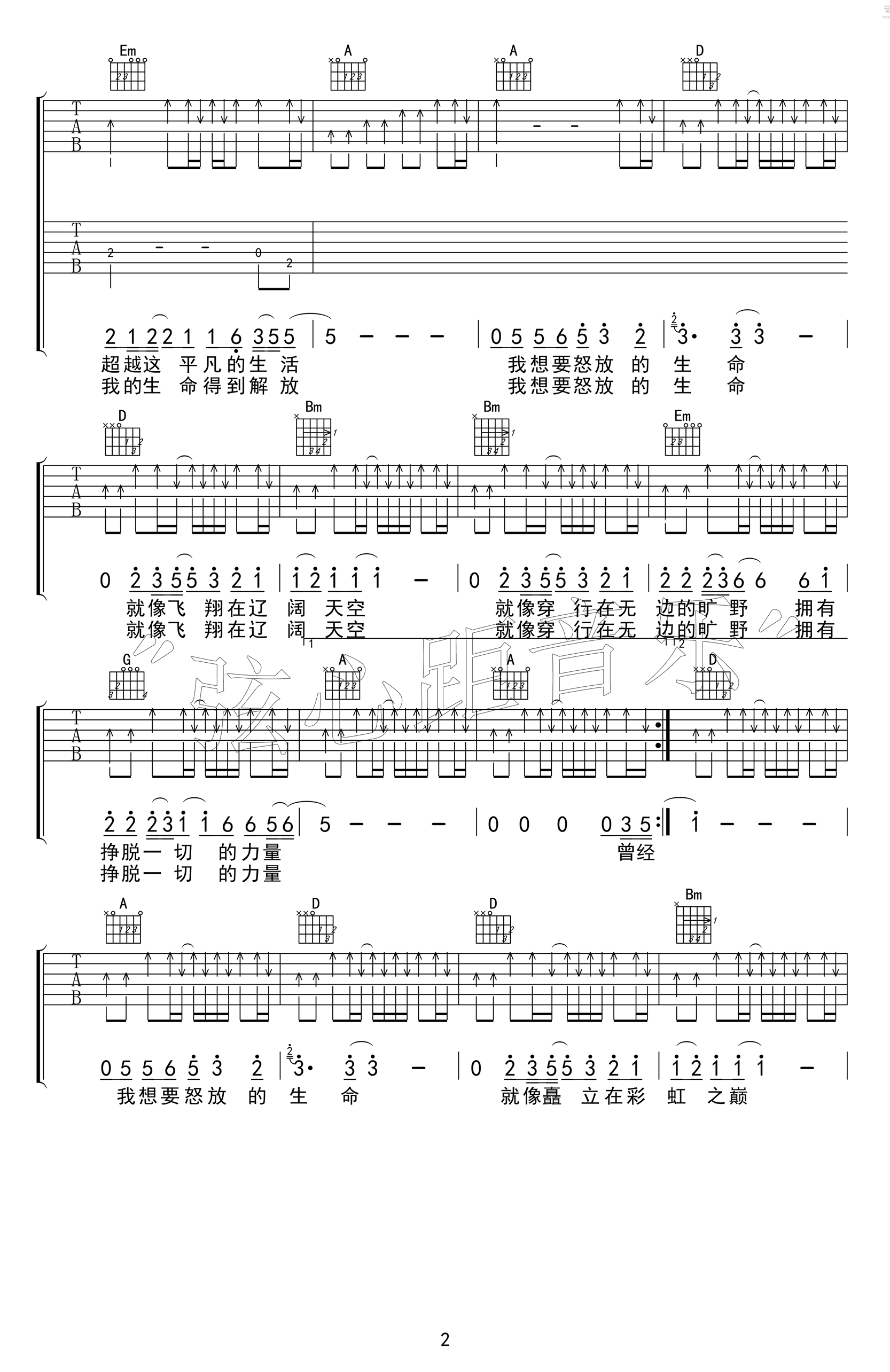 怒放的生命吉他谱_汪峰_双吉他版本_弹唱谱 时间:2019-07-08 来源:弦心距 点击:次 怒放的生命吉他谱,汪峰的一首经典代表歌曲,怒放的生命六线谱,D调弹唱谱,双吉他版本,高清版图片谱。弦心距出品,易唱网上传分享。 这是一首比较简单的歌曲,老师编配成了双吉他,就是希望大家在练琴的时候多注意合作。