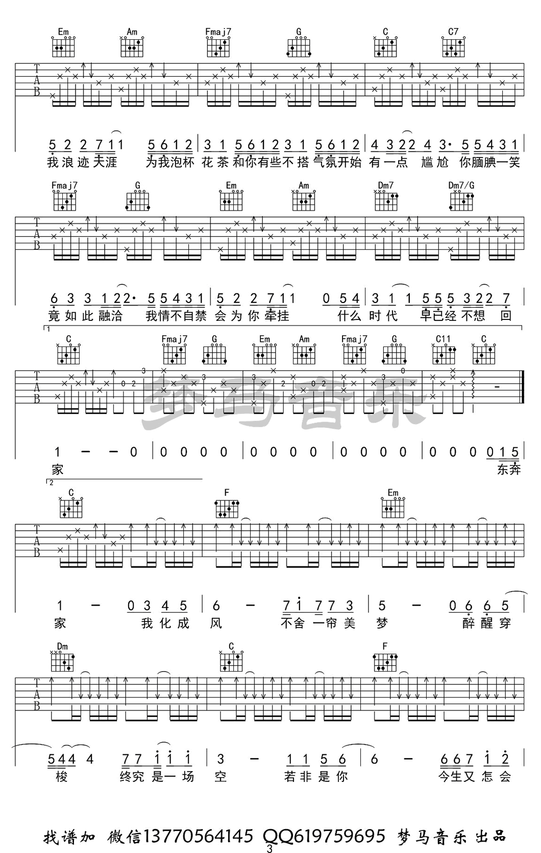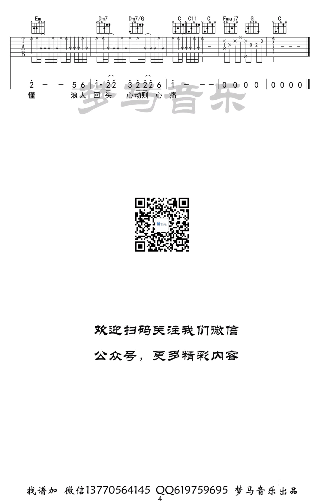 浪人琵琶吉他谱 胡66 C调弹唱谱 吉他示范视频 时间:2018-07-20 来源:梦马音乐 点击:次 浪人琵琶吉他谱,胡66演唱的一首网络歌曲,《浪人琵琶》六线谱,高清图片谱,歌曲选用C调指法,梦马音乐改编,并提供配套吉他弹唱视频演示,易唱网整理上传。 夏祯阳老师要点讲解:这首歌我找了一个女孩蛋蛋来演唱,所以选择的是歌曲的原调。我就负责唱原曲的男声部分。整首歌以十六分音符为主,弹速比较快,还有就是我常用的弹扫指法,其他并无难点。适合大家弹唱。 《浪人琵琶》吉他弹唱示范视频: