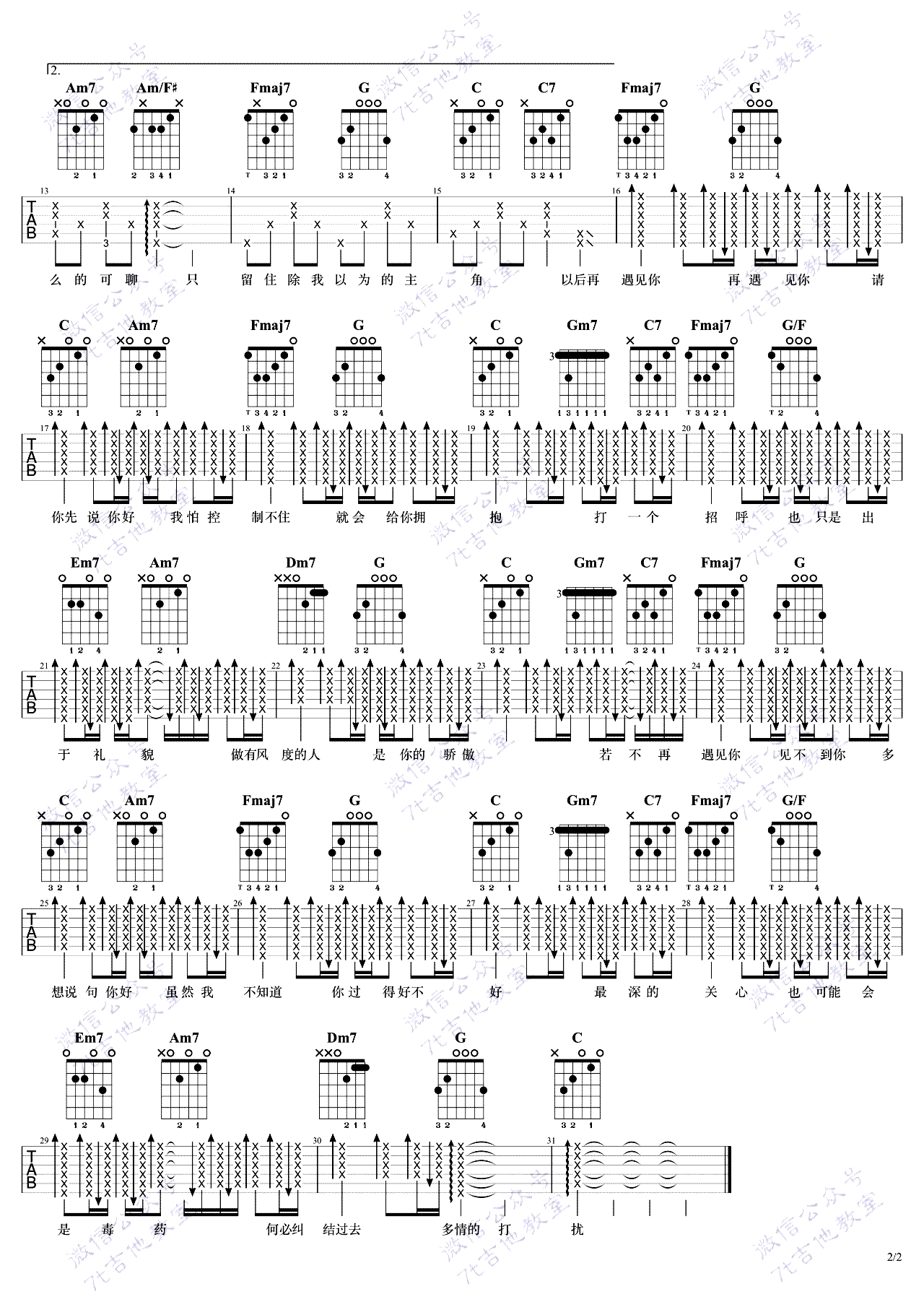 请先说你好吉他谱 C调弹唱谱 吉他演示视频 时间:2019-01-11 来源:7T吉他教室 点击:次 请先说你好吉他谱,贺一航演唱的一首网络热门歌曲,席卷抖音短视频,请先说你好吉他弹唱六线谱,C调指法变调夹夹四品为原调E,感谢7t吉他教室编配,易唱网上传分享,随谱同步配套吉他弹唱视频,进入副歌前面的滑弦技巧,同学们观看演示学习。