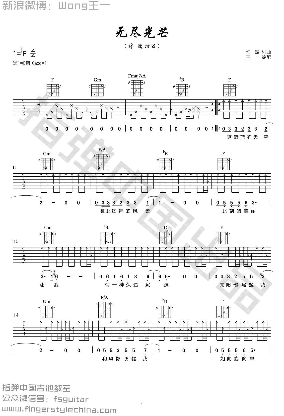 立博体育网-手机APP下载-易唱网echangwang.com 时间:2019-01-15 来源:王一 点击:次 无尽光芒吉他谱版,许巍新专辑歌曲改编,无尽光芒吉他六线谱,原调升F,选调F,变调夹夹一品。王一编配并带来《无尽光芒》吉他弹唱和教学视频,同学们观看老师的讲解和示范演示学习。在熙攘的长街短巷、风雨兼程的旅途,许巍用歌声讲述人间冷暖。音乐是交叠变化的四季轮回,是驻足天桥时车流的穿梭往来,是回忆里某人温暖人心的微笑,是久别相聚后的又一次扬帆远航,是每一次感动带来的无尽光芒。