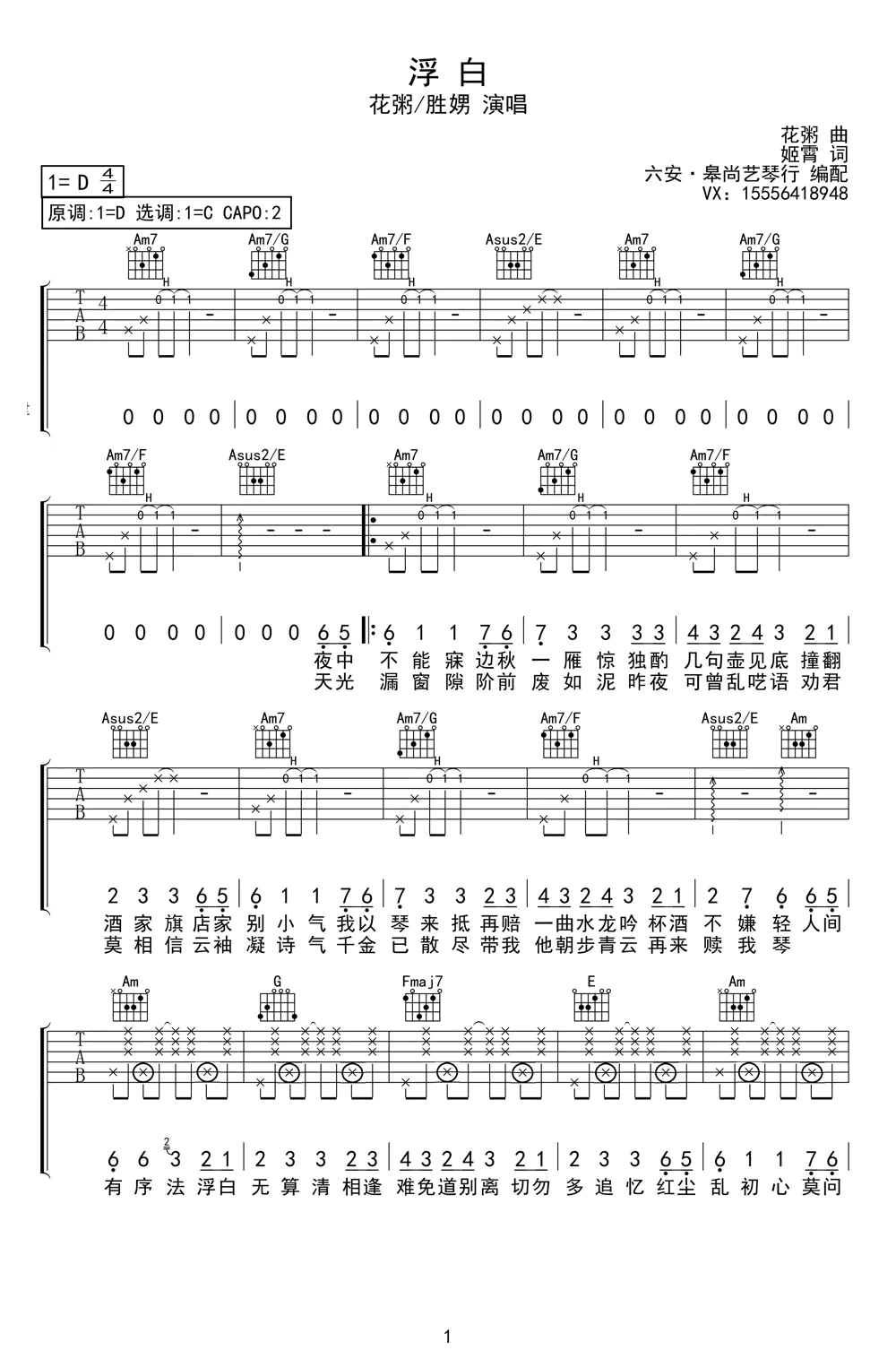 沙巴体育app官网登录-手机APP下载-易唱网echangwang.com 时间:2019-02-13 来源:皋尚艺琴行 点击:次 《浮白》吉他谱,花粥胜娚(王胜男)演唱,原调D,选调C,CAPO夹二品。浮白六线谱,三张图片谱高清版,皋尚艺琴行编配,易唱网网站更新分享。 你们单曲循环了吗?还是原来的配方,还是熟悉的旋律,两位歌手慵懒而又感性的嗓音给我们演绎的了“人间有序法,浮白无算清”,且让我偶然落下十年的烦忧,善罢甘休知往日旧事不可回头。