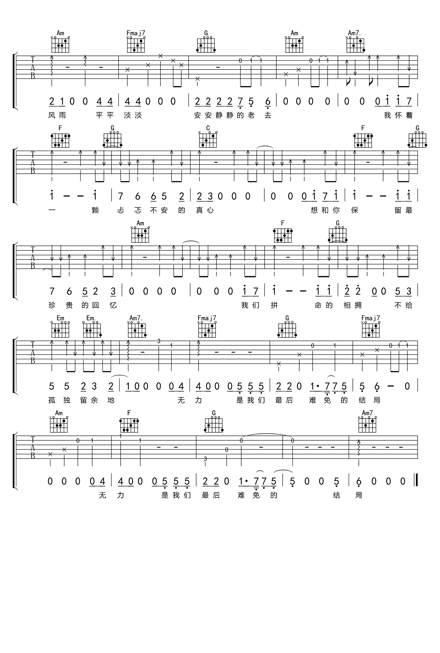 多想在平庸的生活拥抱你吉他谱 隔壁老樊 C调六线谱 时间:2019-02-18 来源:网络 点击:次 多想在平庸的生活拥抱你吉他谱,隔壁老樊演唱,原调降E调,变调夹夹第三品,选用C调指法编配,《多想在平庸的生活拥抱你》六线谱高清图片谱,网络琴友上传分享,易唱网更新。 我怀着一颗忐忑不安真心,想和你保留最珍贵的回忆,我们拼命的相拥不给孤独留余地,无力 是我们最后难免的结局。