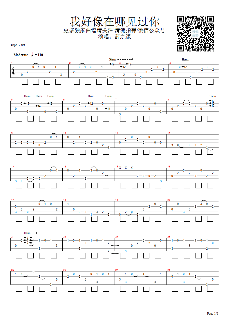 f88体育网页版-手机APP下载-易唱网echangwang.com 时间:2019-03-11 来源:清流指弹 点击:次 我好像在哪见过你吉他谱指弹版,薛之谦演唱歌曲改编,CAPO夹二品,此曲为《精灵王座》的主题曲,我好像在哪见过你吉他独奏谱,清流指弹编配,易唱网上传更新。 薛式情歌一如既往的曲美词伤,优美动听的旋律细腻诠释了生死相依的强烈情感,让人对爱情的期待与幻想产生共鸣。