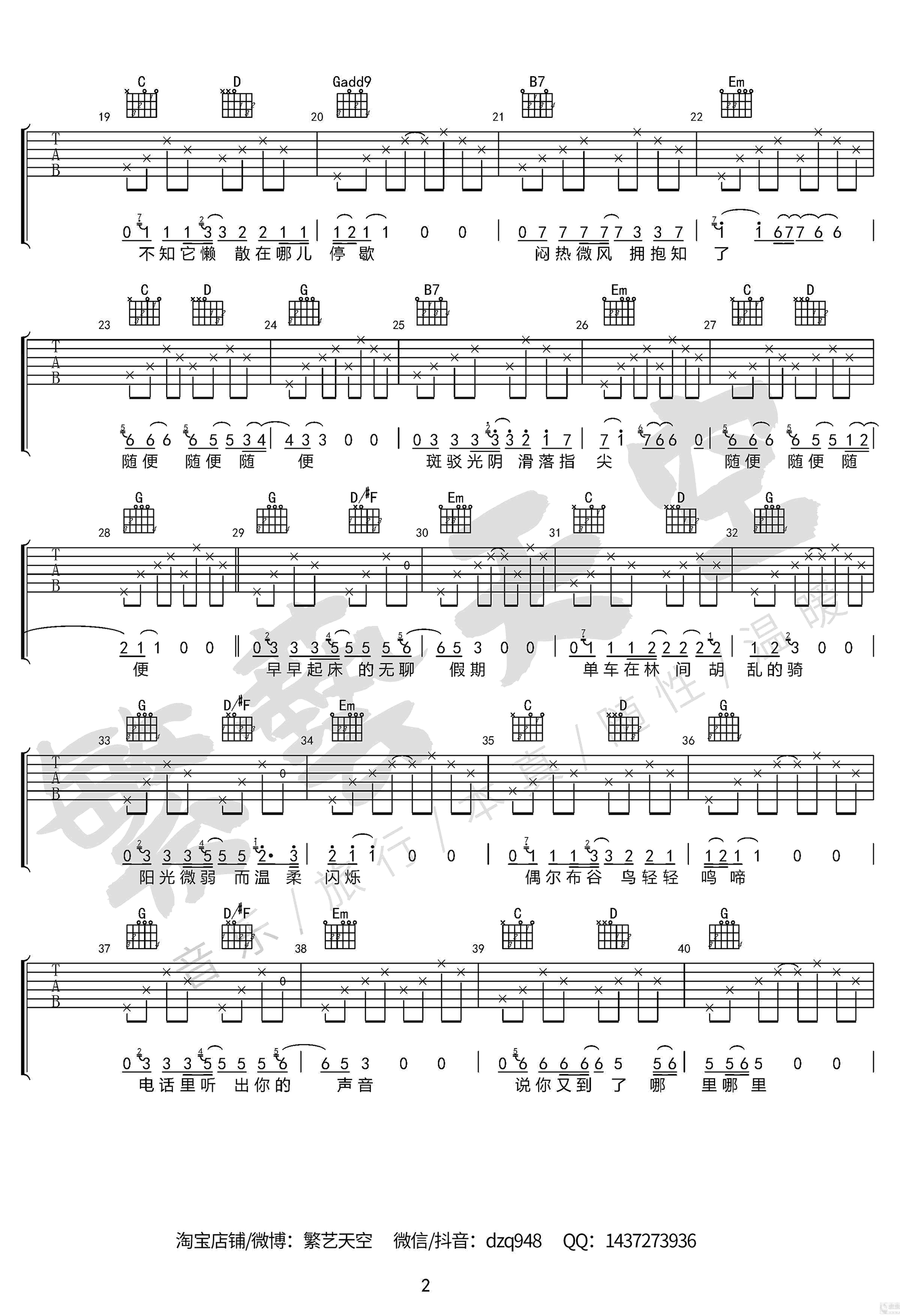 Zinsin《随便》吉他谱_G调完美版_弹唱六线谱 时间:2019-03-15 来源:繁艺天空 点击:次 《随便》吉他谱,Zinsin演唱,G调指法完美版,变调夹夹一品。一首旋律动听的民谣歌曲,随便吉他六线谱,高清弹唱图片谱,繁艺天空编配,易唱网上传分享。 春夏秋冬,四季变换,随便 随便 随便,轻柔舒缓的旋律,安静呢喃的女声,仿佛跌入温柔的梦里。和过去握手言和,时光也会变得柔软起来。于是,所有的执着都化为一句浅浅淡淡的“随便”。亲爱的姑娘啊,愿你始终干净、温暖、洒脱。