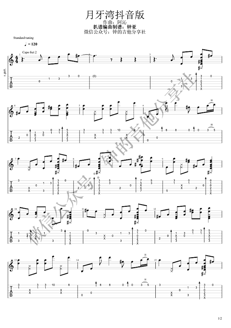 月牙湾指弹谱_抖音版_吉他独奏谱_示范视频演示 时间:2019-03-16 来源:钟的吉他 点击:次 月牙湾指弹谱,根据抖音版改编,一首网络短视频平台爆火的老歌翻唱,是谁的心啊,孤单地留下,他还好吗,我多想爱他。月牙湾吉他独奏谱,钟的吉他分享社扒谱编配,易唱网更新。钟亚老师编配说明:这个曲子我编的很简单,也没有能力编复杂,把调性旋律扒出来后,在第二拍与第四拍加了拍弦,再加一点和声低音,简单的编曲就是这样子的谱子在下面,小伙伴们自己应该会学会的。