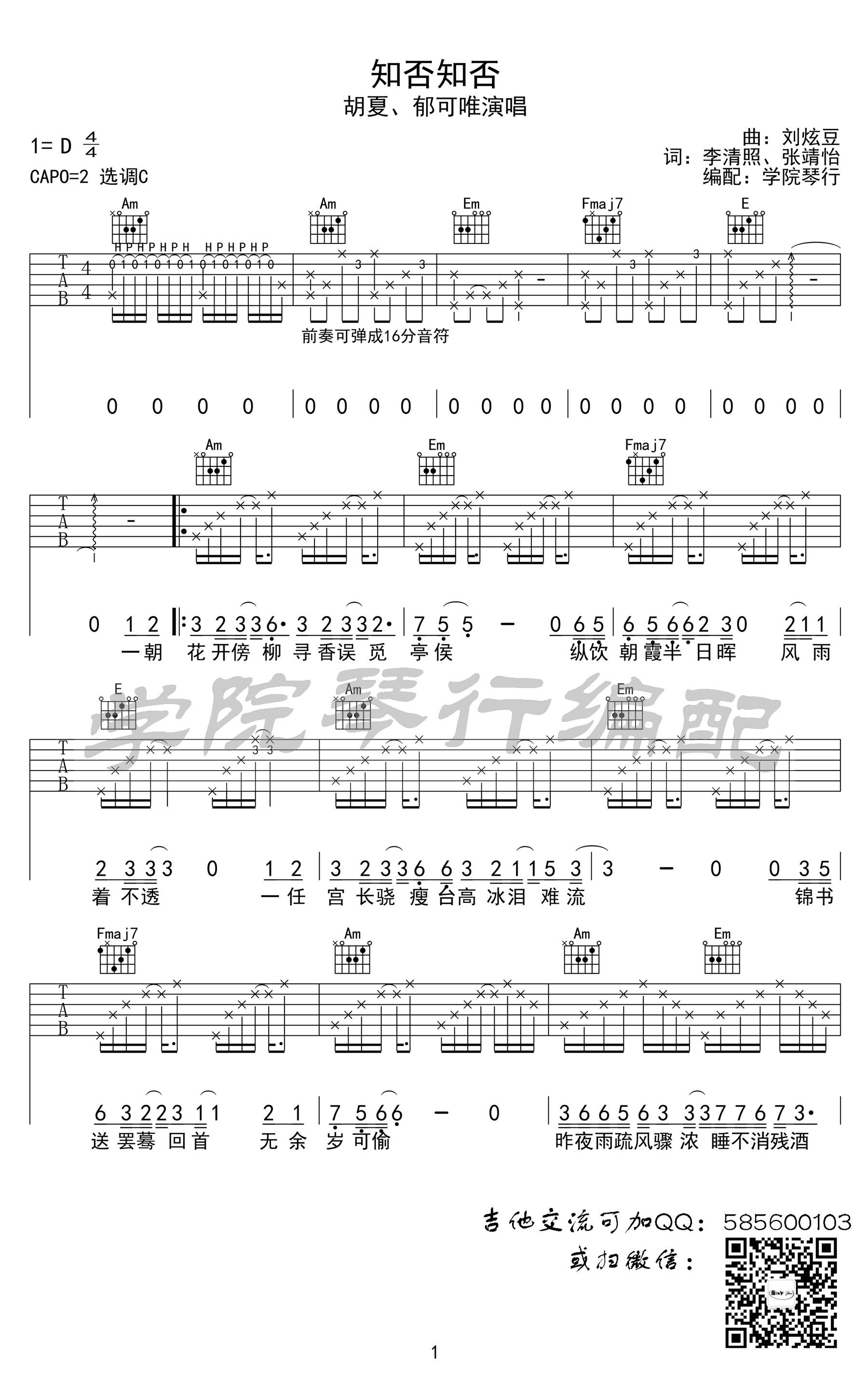 亚美体育app官网-手机APP下载-易唱网echangwang.com 时间:2019-03-22 来源:学院琴行 点击:次 知否知否吉他谱,胡夏郁可唯献唱的一首唯美古风歌曲,热播电视剧《知否知否应是绿肥红瘦》主题曲。知否知否弹唱六线谱,歌曲原调D,CAPO二品,选用C调指法,感谢学院琴行编配出品,易唱网上传分享。 李清照耳熟能详的经典诗词,被男女声如此深情对唱演绎,一曲终了,道不完人生风雨跌宕起伏,别有一番动人的滋味在心头。