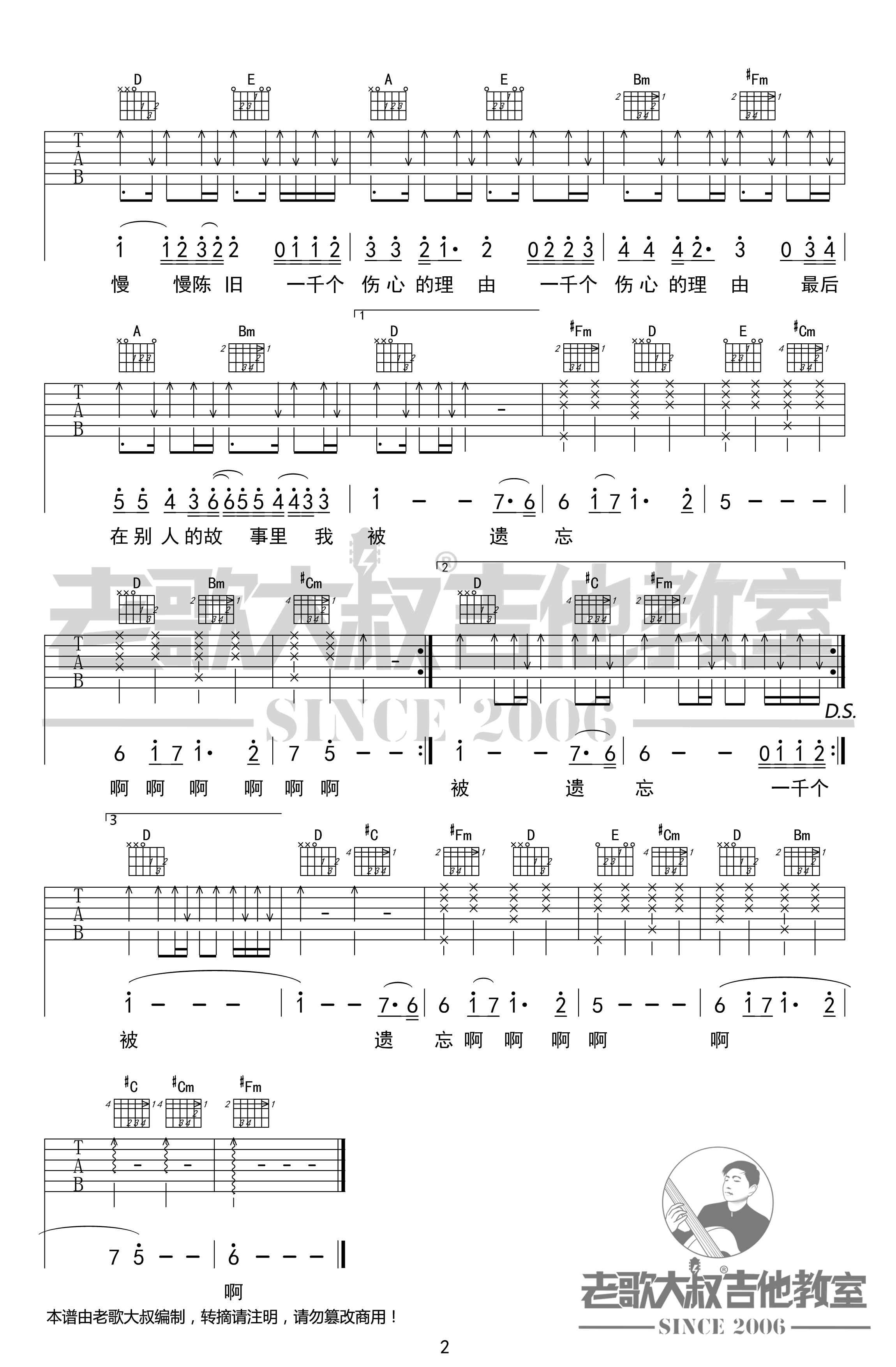 乐动体育App官网-手机APP下载-易唱网echangwang.com 时间:2019-04-11 来源:老歌大叔 点击:次 一千个伤心的理由吉他谱,张学友演唱的一首经典老歌,唱尽了无数人的绵绵忧伤。一千个伤心的理由六线谱,A调弹唱谱,变调夹夹一品。老歌大叔吉他教室编配,易唱网上传分享。 生活里总能找出很多不如意的事情,每个人也有着各种伤心的原因,或大或小或远或近,只多不少还永不雷同。但是人生也有无数个需要自己打起精神,勇往直前的理由,心怀希望,相信阴霾既散阳光终会出现的时候。