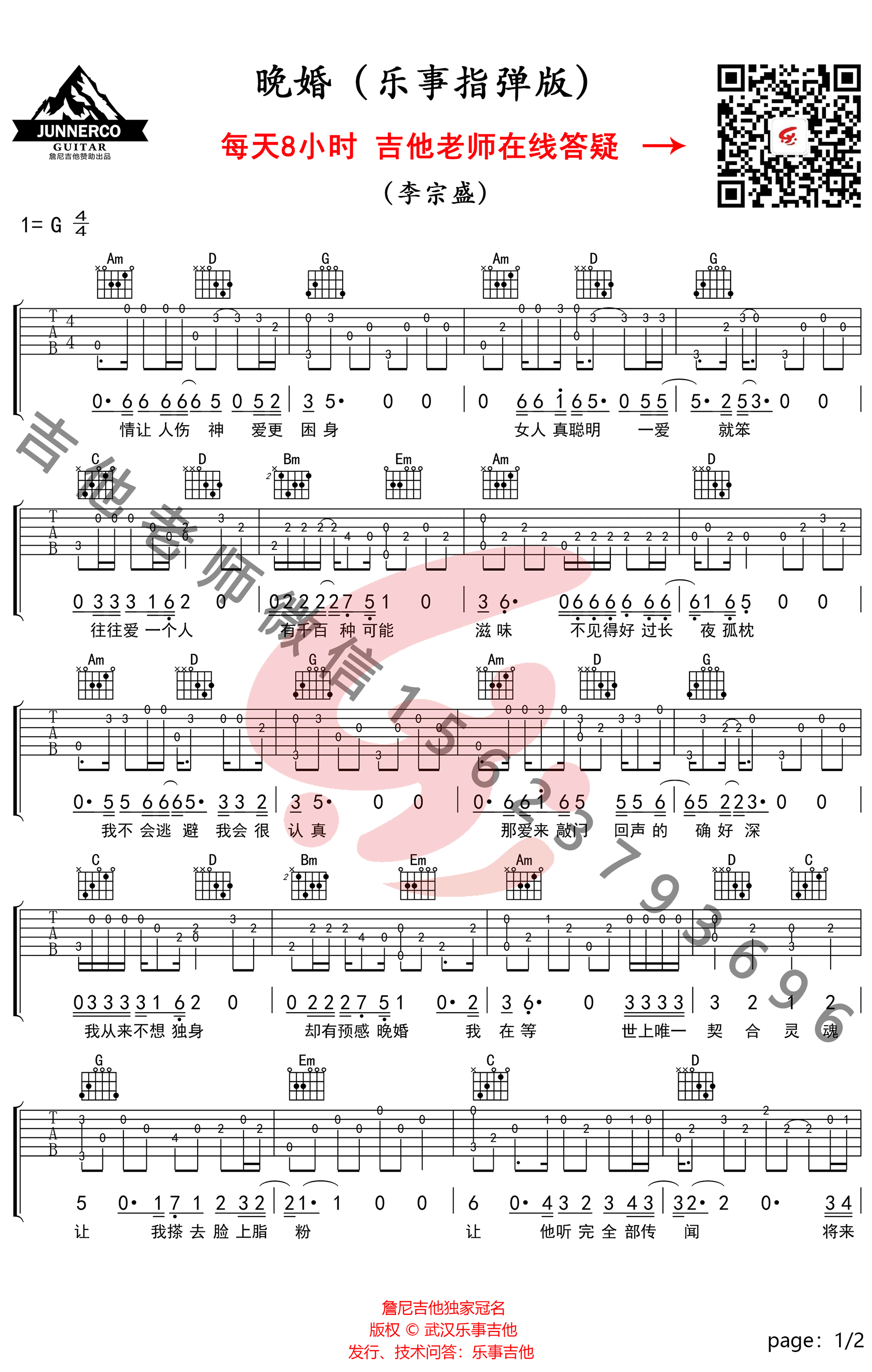 晚婚指弹谱_隔壁老樊_吉他独奏谱_吉他教学视频 时间:2019-07-23 来源:乐事吉他 点击:次 晚婚吉他谱指弹版,隔壁老樊版本改编,李宗盛的一首歌曲,晚婚吉他独奏谱,乐事吉他编配制谱,并为琴友们带来曲谱配套的《晚婚》吉他指弹教学视频。易唱网整理分享。 我从来不想独身,却有预感晚婚。不喜欢跟别人抢,但也不会让,不会主动敲门,也不会逃避爱情。像我这样龟缩做保护壳里的人啊,总是奢求幸福的,即便他可能永远不会出现,但我仍旧真心的祈祷他的到来,只希望幸福可以来得晚一些,只要心灵契合的那个你能出现……
