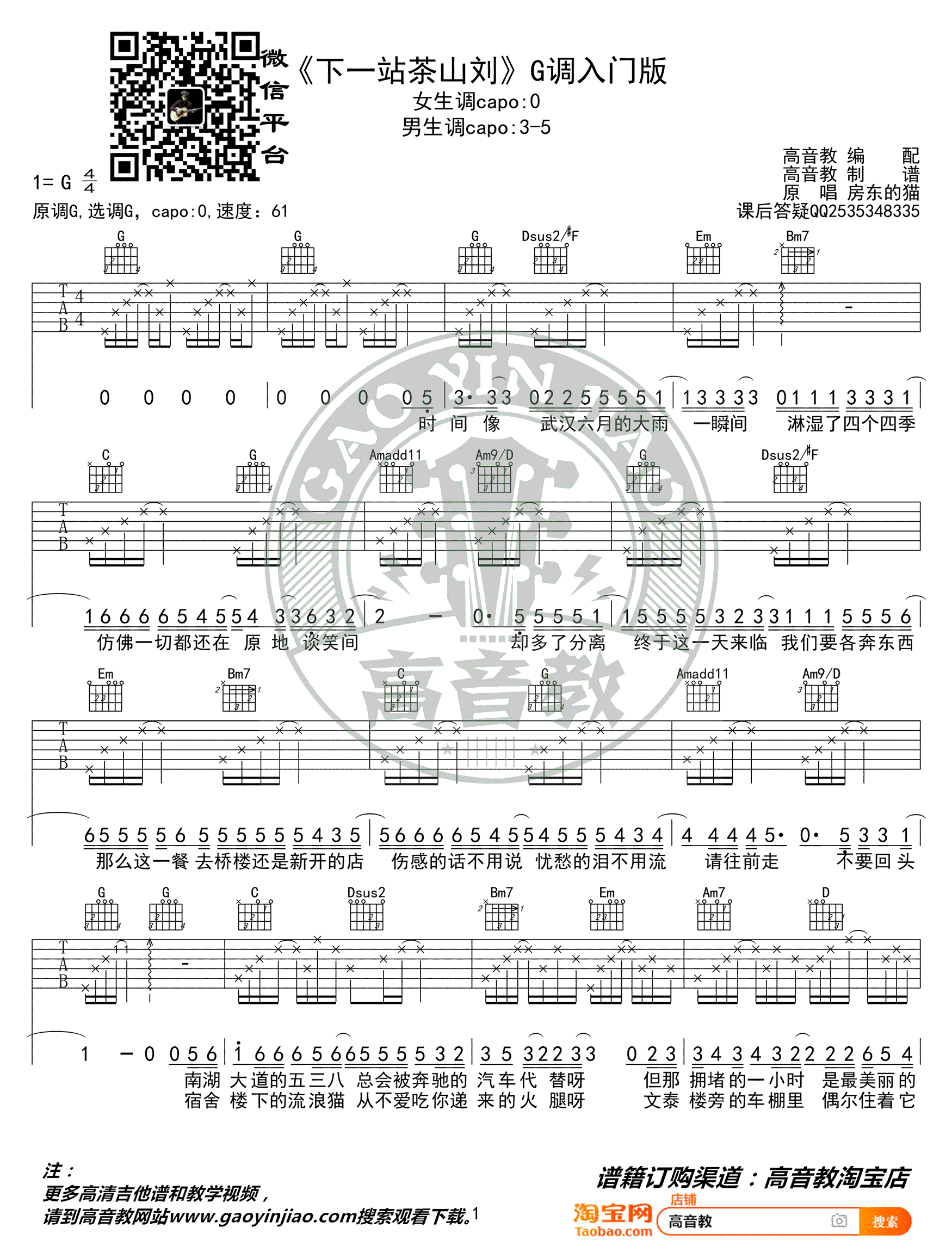 韩国赌场网址-手机APP下载-易唱网echangwang.com 时间:2019-08-01 来源:高音教 点击:次 《下一站茶山刘》吉他谱,房东的猫演唱,G调入门版,下一站茶山刘六线谱,女生原调弹唱,男生建议变调夹夹三品,高清图片谱,高音教编配出品,易唱网上传分享。 初夏突然而至的大雨,盛满了离别的气息,房东的猫,让快乐的民谣带走告别的哀愁。一首文艺清新歌,致即将毕业的你。或是让你回想下大学时光~
