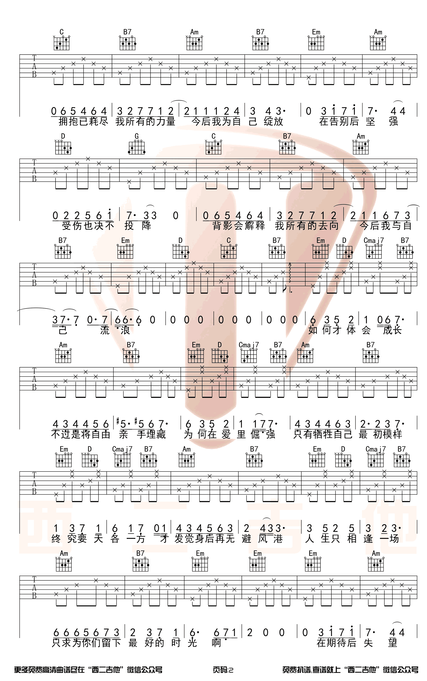 今后我与自己流浪吉他谱_张碧晨_G调原版_弹唱六线谱 时间:2019-08-11 来源:西二吉他 点击:次 《今后我与自己流浪》吉他谱,张碧晨演唱,动画电影《哪吒之魔童降世》片尾曲,今后我与自己流浪六线谱,三张高清图片谱。西二吉他编配出品,易唱网整理分享。 你,是否也在独自流浪? 这首歌诠释了什么是极度孤独,像一个自信强大的人独自行走,在期望后失望,在孤独中疗伤。若命运不公,就和它斗争。勇敢去突破自己。