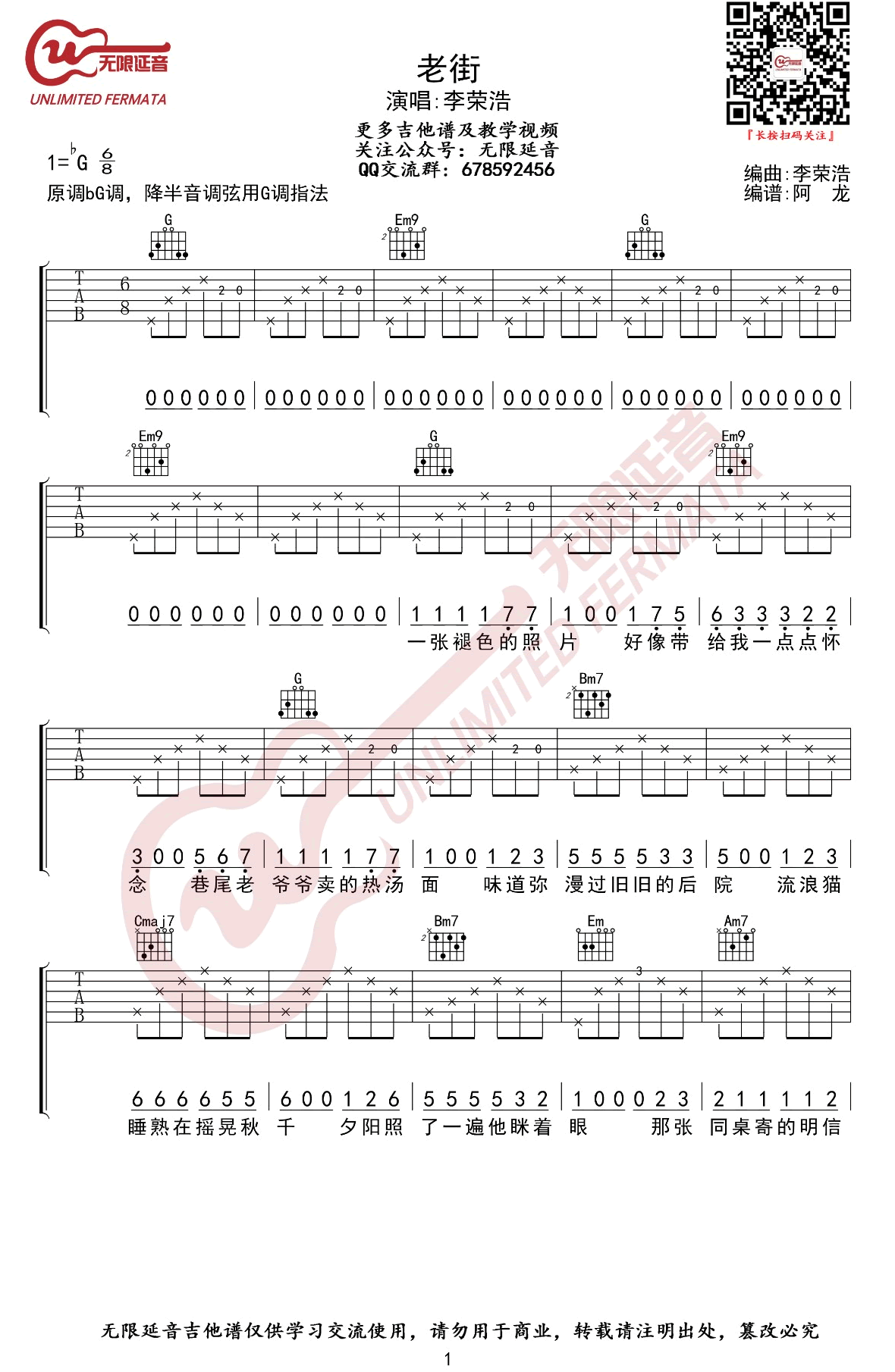 老街吉他谱_李荣浩_G调弹唱谱_老街六线谱 时间:2019-08-18 来源:无限延音 点击:次 《老街》吉他谱,李荣浩词曲原创作品,原调bG,降半音调弦用G调指法。老街六线谱,三张弹唱图片谱。无限延音编配,易唱网整理分享。 大家或多或少都有些怀念的东西吧。可能是高中校门口一碗热腾腾的打卤面,可能是夏末秋凉里的一场雨,可能是她给的一颗棒棒糖......李荣浩唱道的《老街》,和回忆里那么多场景相似,听着歌,好像一晃眼就能到达那条老街。