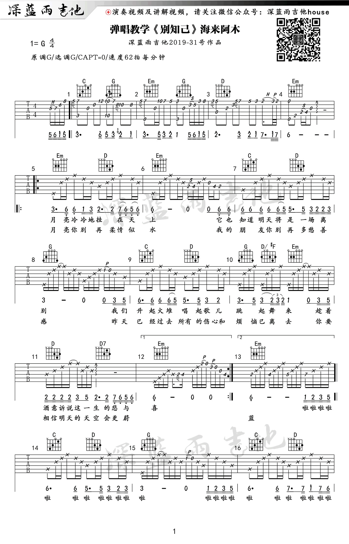 排名前十买球app-手机APP下载-易唱网echangwang.com 时间:2019-10-27 来源:深蓝雨吉他 点击:次 《别知己》吉他谱,海来阿木演唱的一首红遍大江南北的网络歌曲,别知己六线谱,原调G,弹唱图片谱。感谢深蓝雨吉他编配出品,易唱网整理分享。知己,它是一生难求的朋友,正所谓:“士为知己者死”。人这辈子,遇到一个知心的朋友请珍惜。漫漫余生,愿有一人 真心待你,有福同享,患难同济。