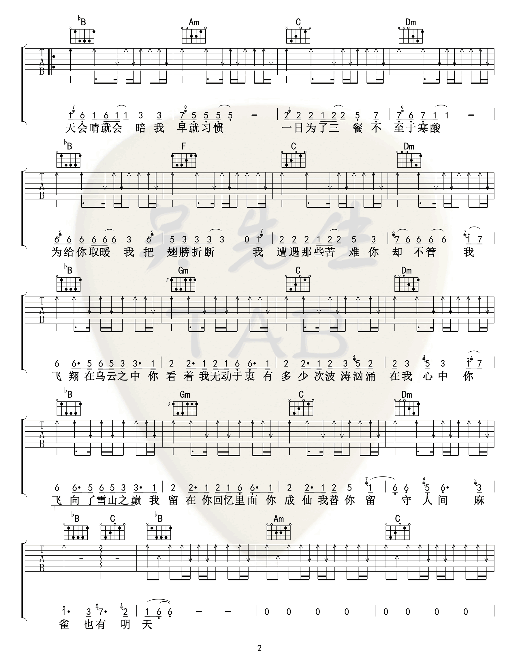鸭脖娱乐最新网站-手机APP下载-易唱网echangwang.com 时间:2019-12-06 来源:吴先生 点击:次 《麻雀》吉他谱,李荣浩的一首新歌,用麻雀映射都市人间的平凡生活。麻雀六线谱,完整版共四张图片谱。吴先生扒谱制谱,易唱网上传推荐。 李荣浩的新歌词曲俱佳,少了很多刻骨铭心的悲伤,多了几分随性洒脱的释然。麻雀也有明天,道出每一个平凡人对未来的美好期望,唯有梦想才能让我们逆流而上。