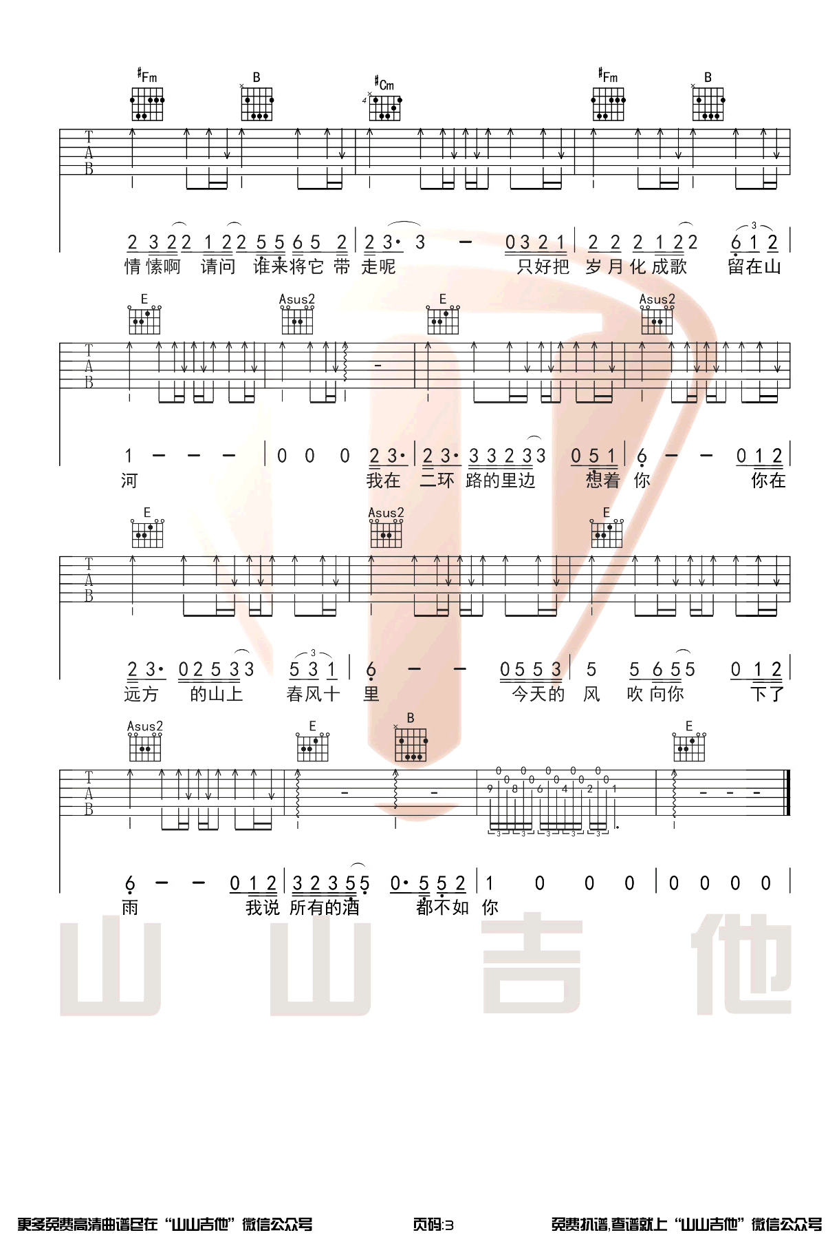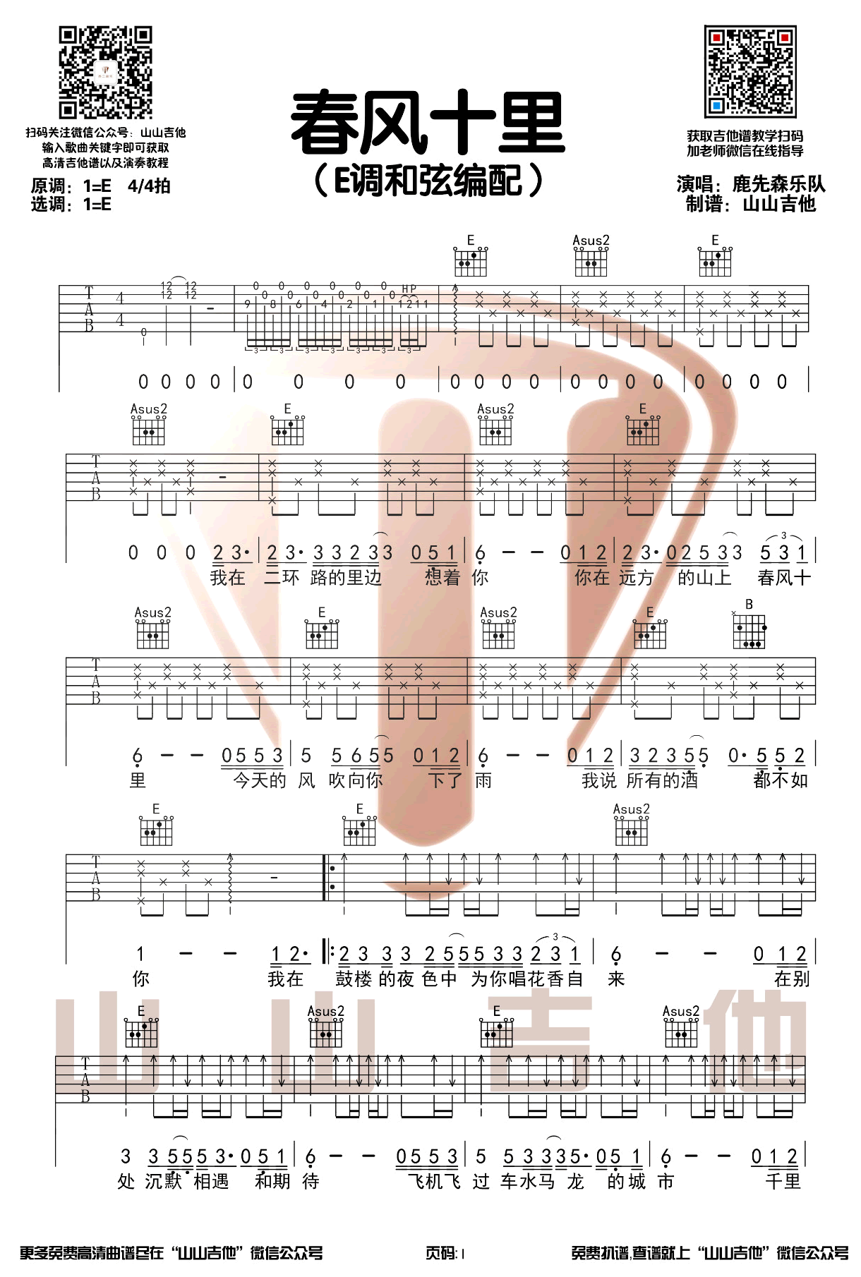 春风十里吉他谱_鹿先森乐队_E调_吉他弹唱演示 时间:2020-03-02 来源:山山吉他 点击:次 《春风十里》吉他谱,鹿先森乐队的一首成名曲,春风十里六线谱,E调和弦编配,三张弹唱图片谱,山山吉他制谱分享,易唱网整理上传。 流畅的旋律,文艺的歌词,被众多民谣爱好者喜欢,收获了众多网友好评。山山老师为大家录制了这首歌曲的吉他谱演示视频,接下来就一起来看看吧~