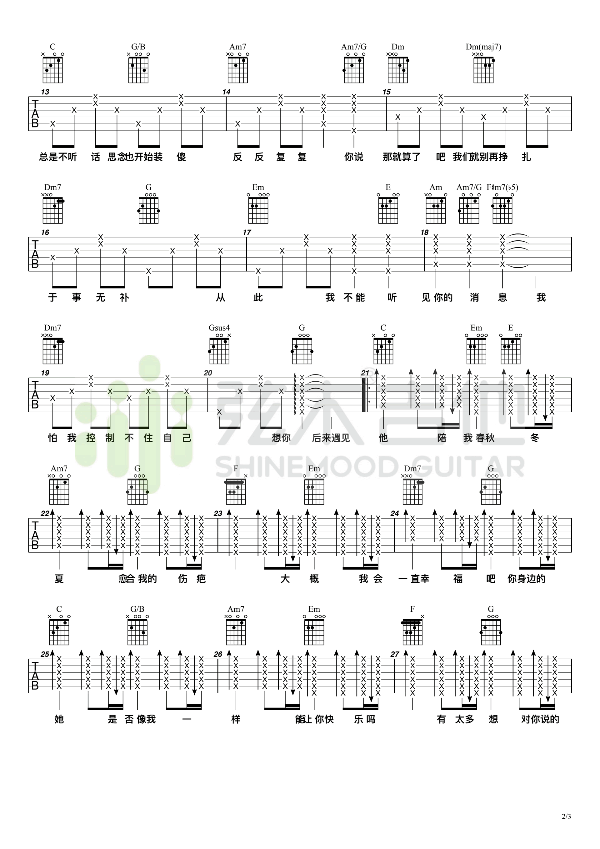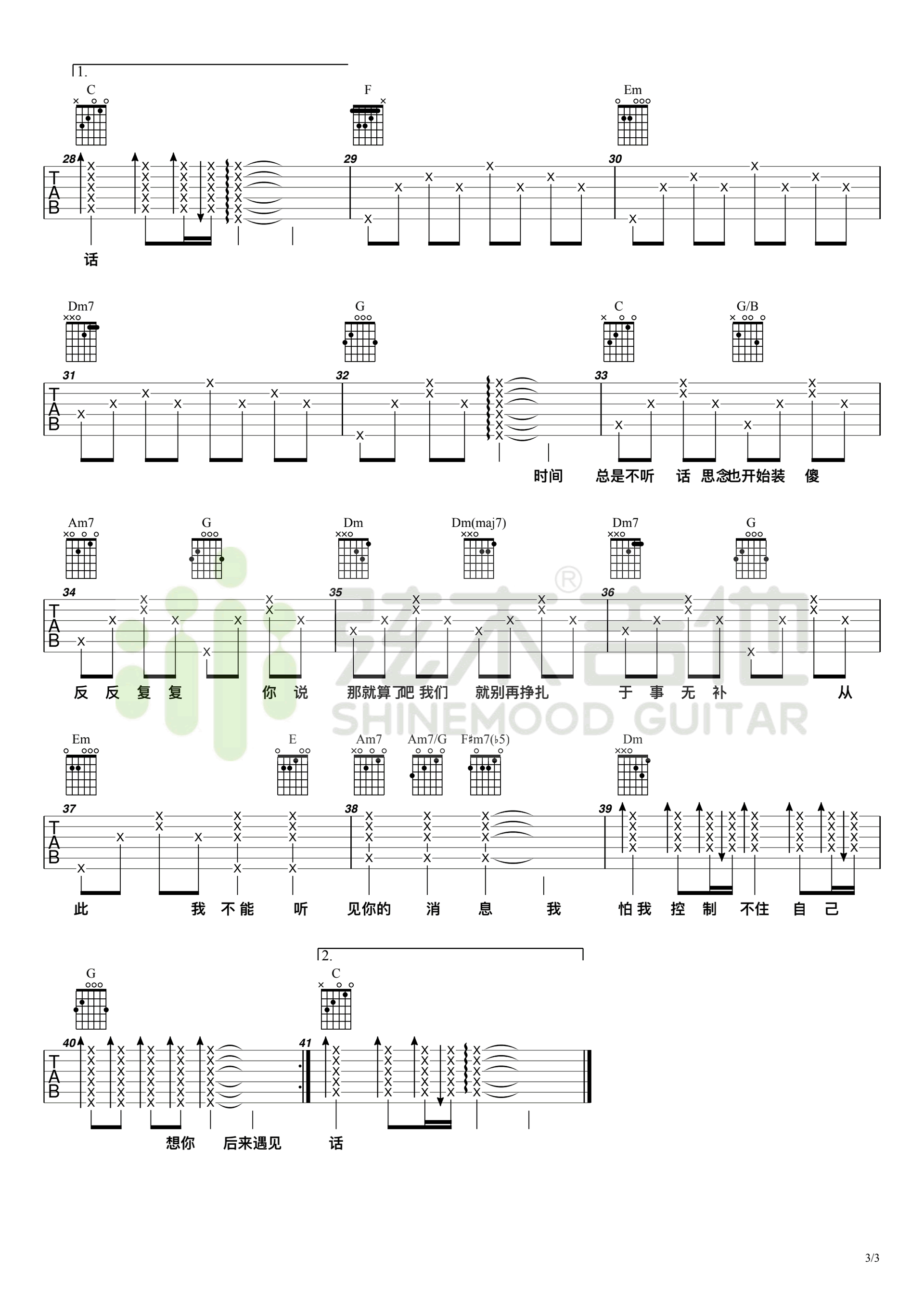 胡66《后来遇见他》吉他谱_C调_弹唱六线谱 时间:2020-05-03 来源:弦木吉他 点击:次 后来遇见他吉他谱,胡66原唱,一首好听的网络热门歌曲,后来遇见他六线谱,原调F,选用C调指法,变调夹夹六品,三张高清弹唱图片谱,感谢弦木吉他编配出品,易唱网上传更新。 一首温暖且治愈的歌。无论曾经遇到怎样的人,是好的,坏的,不合适的。都不要放弃,未来一定会遇见他。命中注定的他,陪你冬秋初夏,愈合你的伤疤。 在他/她来之前,请好好爱自己。
