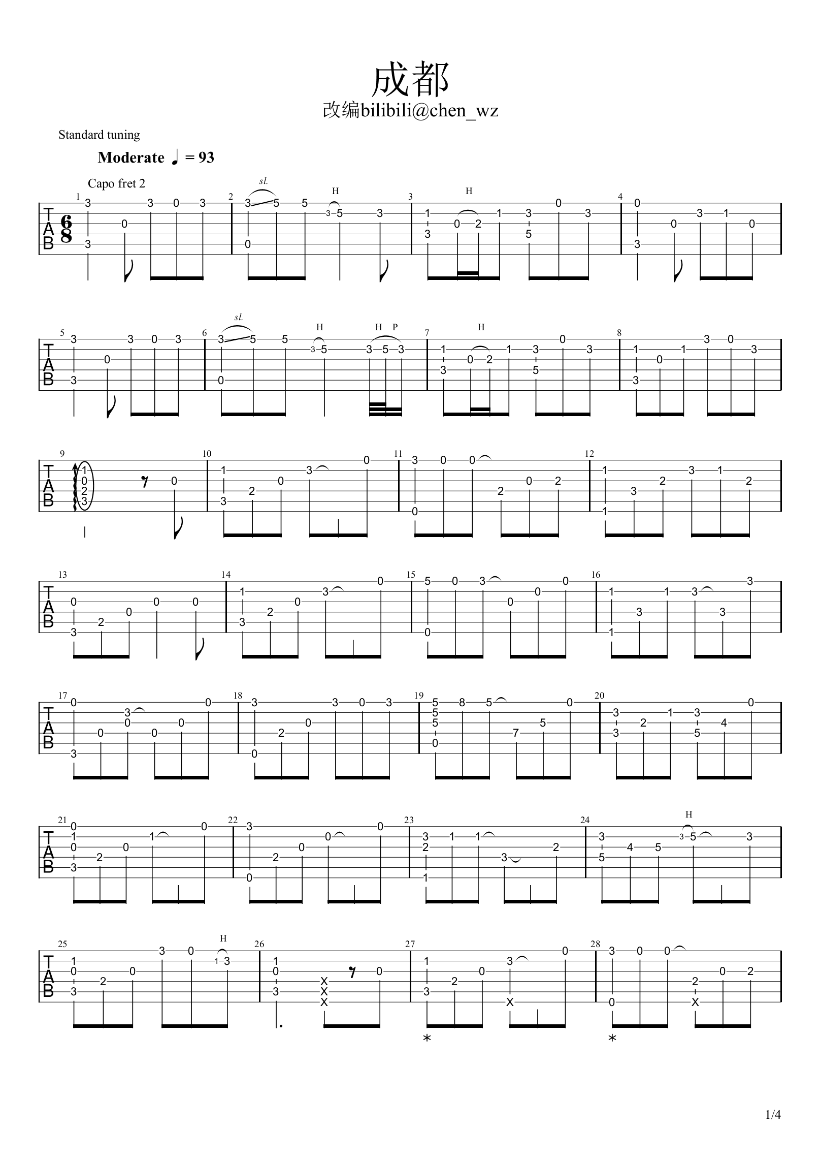 BET9九卅娱乐真人游戏-手机APP下载-易唱网echangwang.com 时间:2020-05-08 来源:chen_wz 点击:次 成都指弹吉他谱,根据赵雷的经典民谣歌曲改编,最简单的编配,最极致的土味,成都吉他独奏谱,capo夹二品,完整版共四张高清图片谱。感谢chen_wz老师编配出品,并为广大琴友带来曲谱配套吉他演示视频,易唱网更新上传。