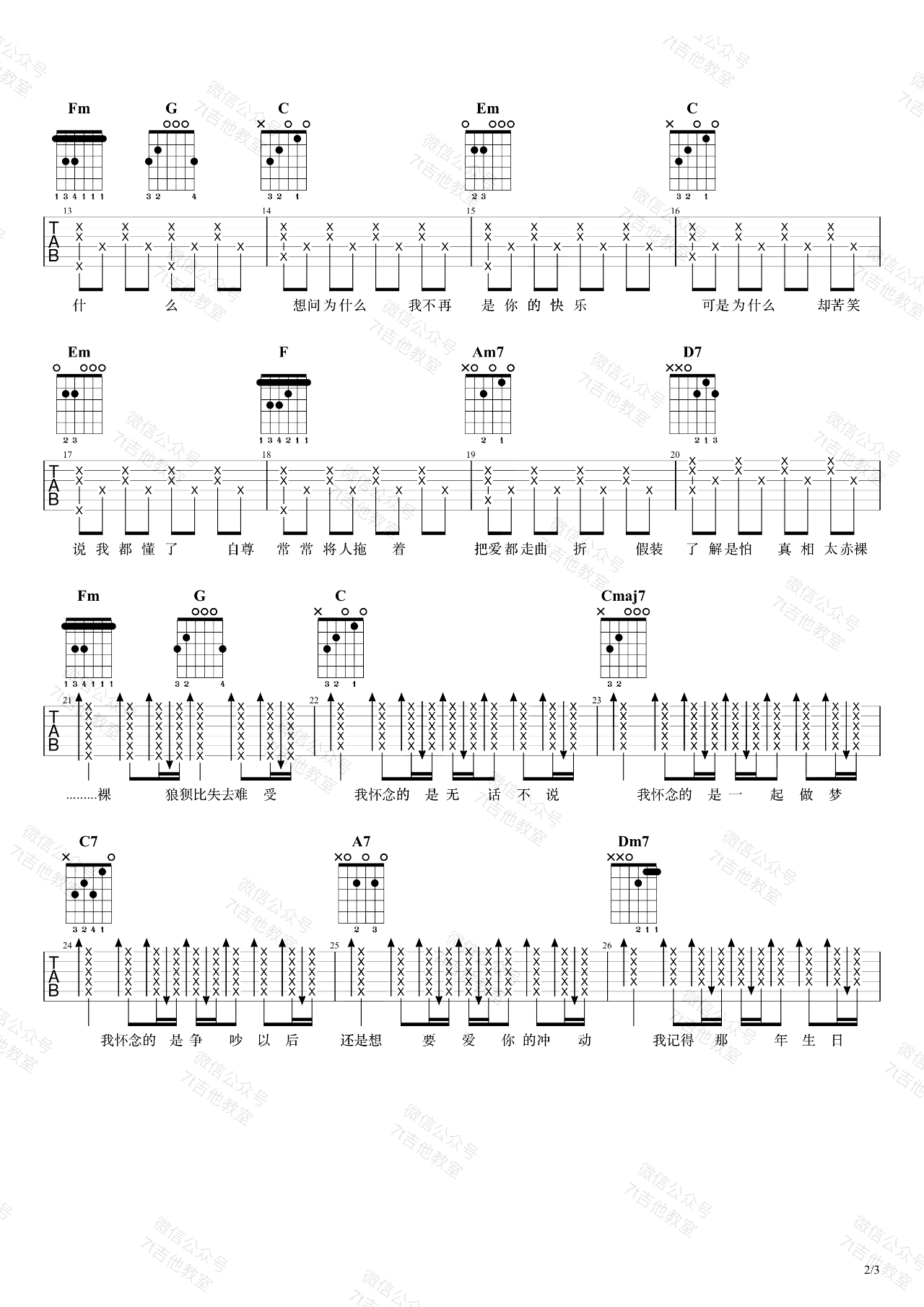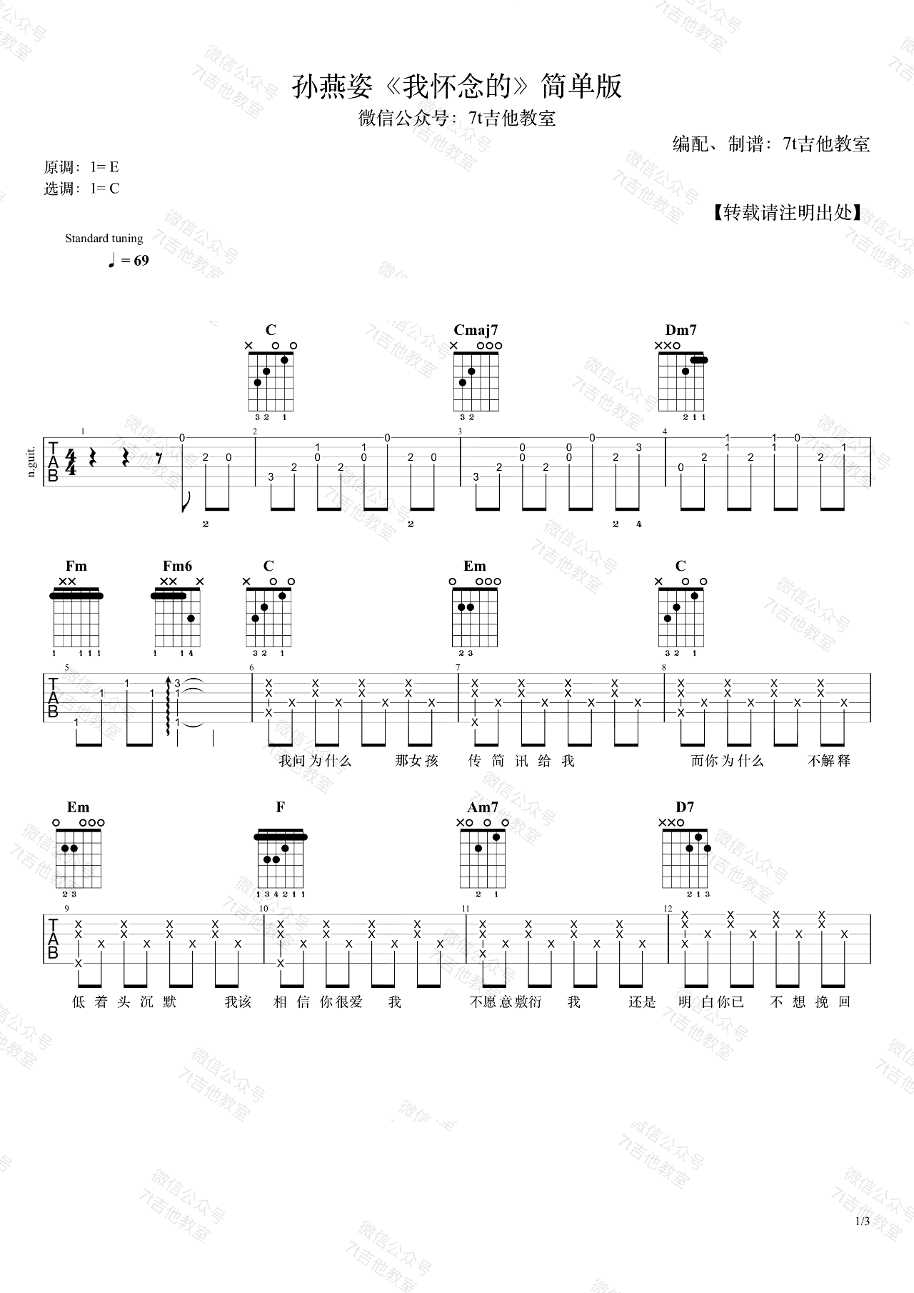m6米乐官方入口-手机APP下载-易唱网echangwang.com 时间:2020-06-30 来源:7T吉他教室 点击:次 《我怀念的》吉他谱,孙燕姿的经典代表作品,我怀念的六线谱,女生简单版,三张图片谱。这首歌的原调是E大调,采用C大调的指法来编配,视频里是标准音调弦,变调夹夹在第4品,也就是原调。音域较高的男生也可以用这个谱子,不过建议少夹几品~ 感谢7T吉他教室编配,蜜汁叉烧肠弹唱演示,易唱网吉他谱更新上传。
