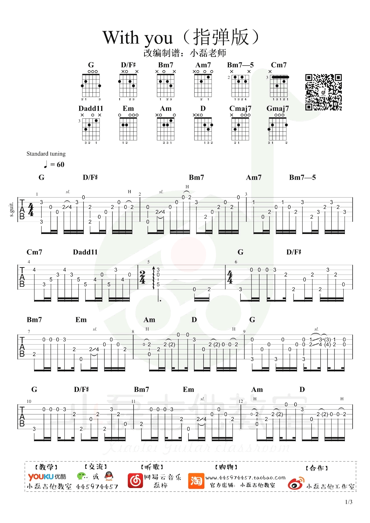 和你在一起指弹谱_吉他独奏谱_指弹教学视频 时间:2020-10-24 来源:小磊吉他 点击:次 《和你在一起》指弹吉他谱,一首经典歌曲改编,和你在一起吉他独奏谱,共三张图片谱,感谢小磊吉他编配出品,易唱网收藏分享。 这首指弹曲目,难度不高,大家都可以练习一下,算是对未来的期许,对过去的缅怀,因为,这个世界会好的。