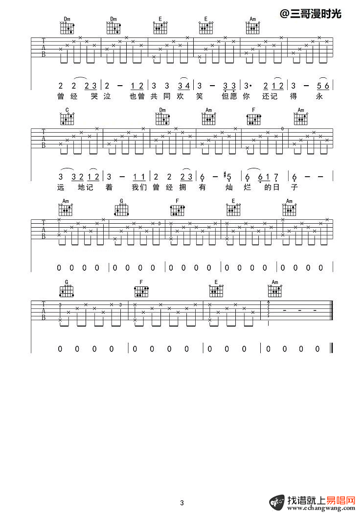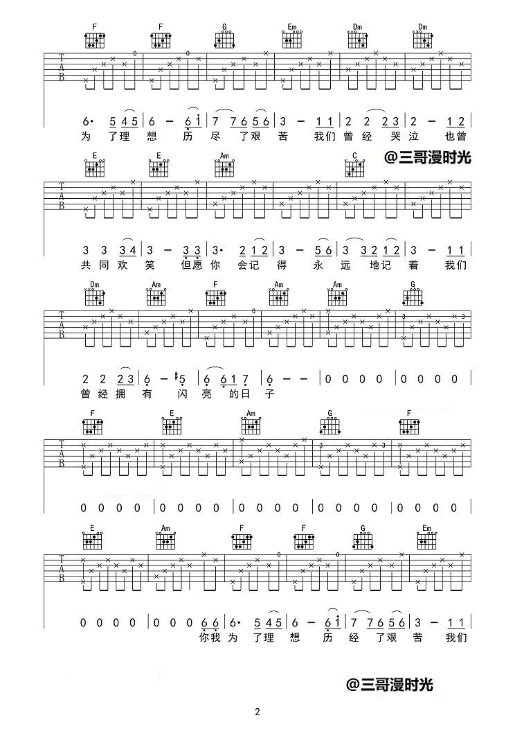 闪亮的日子吉他谱_三哥漫时光版本_弹唱六线谱 时间:2020-12-10 来源:三哥漫时光 点击:次 闪亮的日子吉他谱,罗大佑在1977年为刘文正主演的同名电影《闪亮的日子》所作,闪亮的日子吉他六线谱,三张弹唱图片谱。三哥漫时光编配出品,易唱网整理上传。 三哥翻唱了这首歌,勾起了很多朋友的回忆,让我们想起了那些闪亮的日子。这绝对是一首经典好听的歌。网上有很多这首歌的吉他谱,但总觉得有点复杂难弹还缺了点什么味道。之前也有很多人私信说想要这首歌的吉他谱,今天就给大家分享一下。