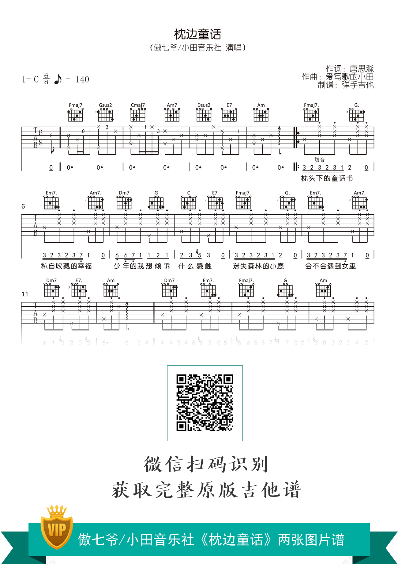 亚博登录网址首页-手机APP下载-易唱网echangwang.com 时间:2021-01-10 来源:弹手吉他 点击:次 《枕边童话》吉他谱,傲七爷/小田音乐社演唱,枕边童话吉他弹唱谱,C调编配高清六线谱,完整版共两张图片,曲谱编配制作不易,感谢琴友们对付费吉他谱的支持,易唱网上传推荐。 你是那童话里的公主,站在光明处,我戴上华丽假面,转身躲进黑礼服。傲七爷《枕边童话》全新上线,请和我起舞趁着童话还没有结束,天亮后让一切恢复。