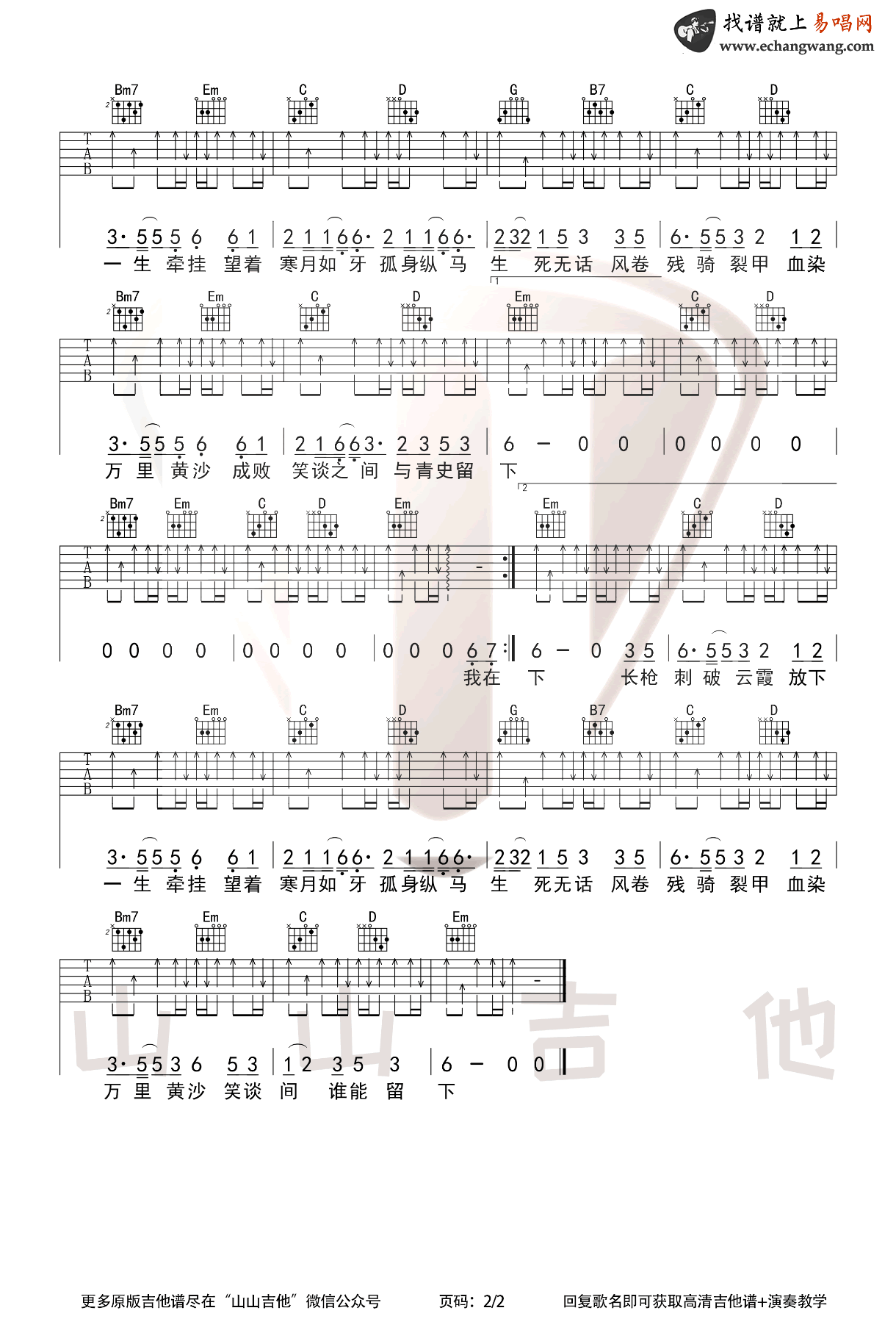踏山河吉他谱_是七叔呢_G调_吉他弹唱演示视频 时间:2021-01-18 来源:山山吉他 点击:次 踏山河吉他谱,是七叔呢演唱,一首网络热门古风歌曲。踏山河六线谱,G调指法编配,两张弹唱图片谱。易唱网更新上传,山山吉他编配出品。 我与春风皆过客,你携秋水揽星河,过树穿花踏山河,终要与你相逢。随谱附上《踏山河》吉他弹唱视频,琴友们可以参照老师的演示练习起来。