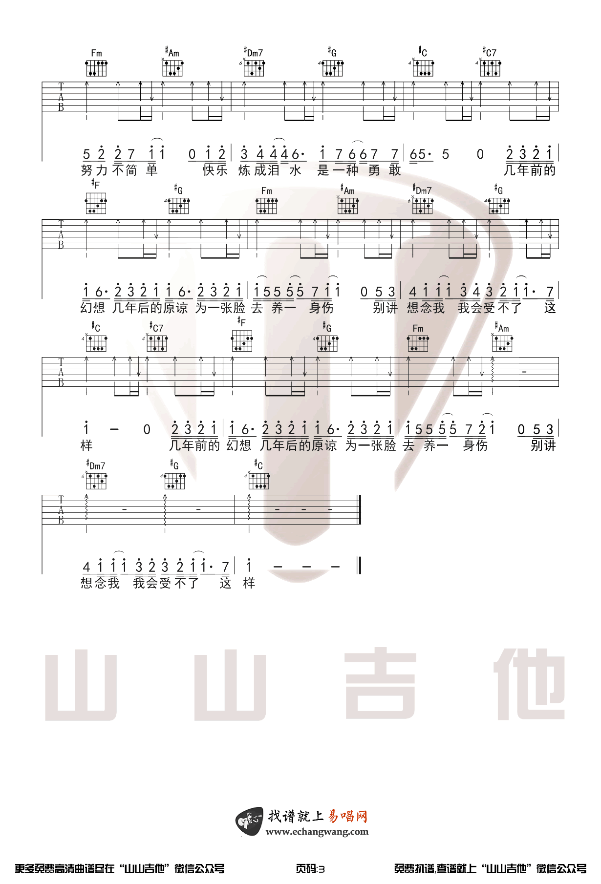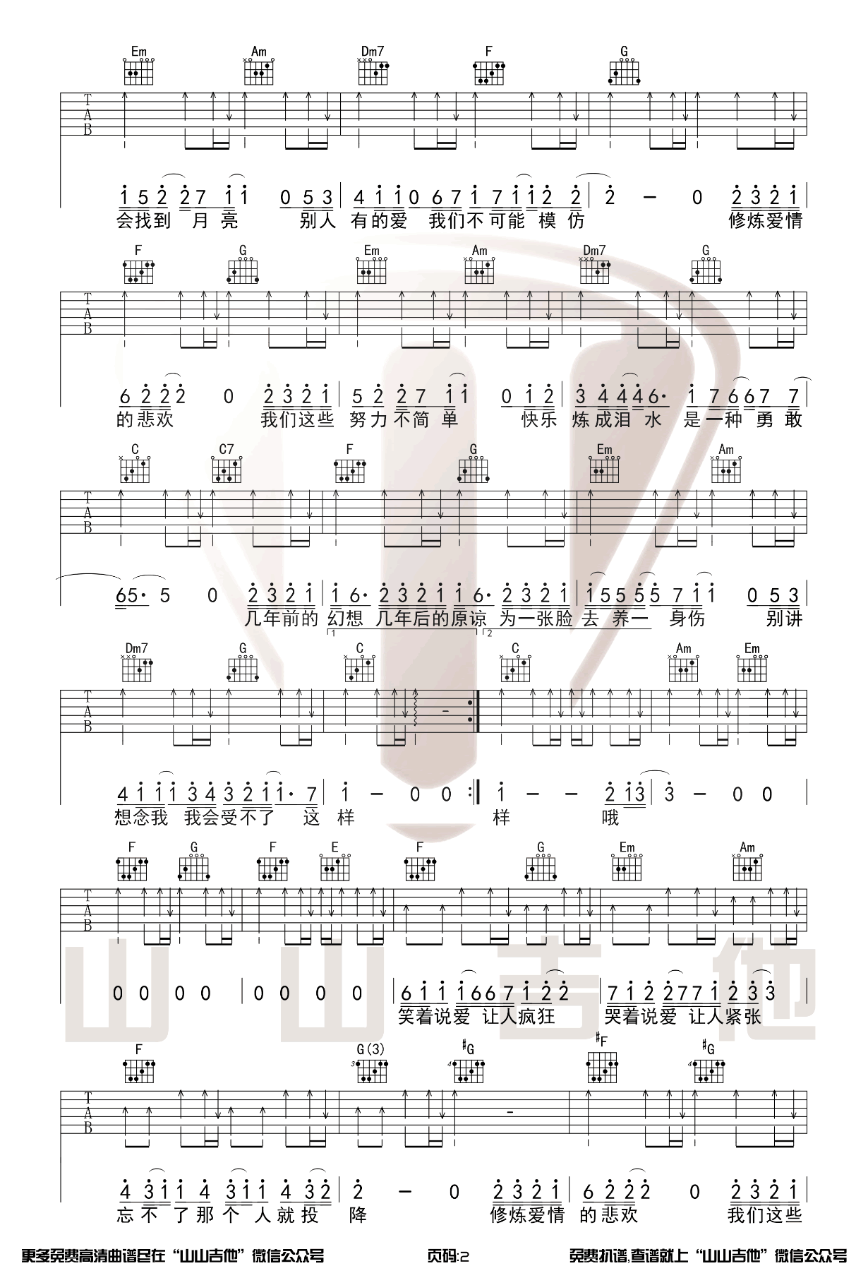 林俊杰《修炼爱情》吉他谱_C调_弹唱演示视频 时间:2021-03-18 来源:山山吉他 点击:次 修炼爱情吉他谱,林俊杰经典歌曲弹唱谱,修炼爱情吉他六线谱,C调指法编配,CAPO夹三品,三张图片谱,感谢山山吉他出品,易唱网更新上传。 随谱附上老师带来的曲谱配套吉他弹唱演示视频,琴友们跟随示范练习。有些回忆无法遗忘,有些感情失去后就不能重回,爱是一次修炼,都是为了让下一次更美好 。