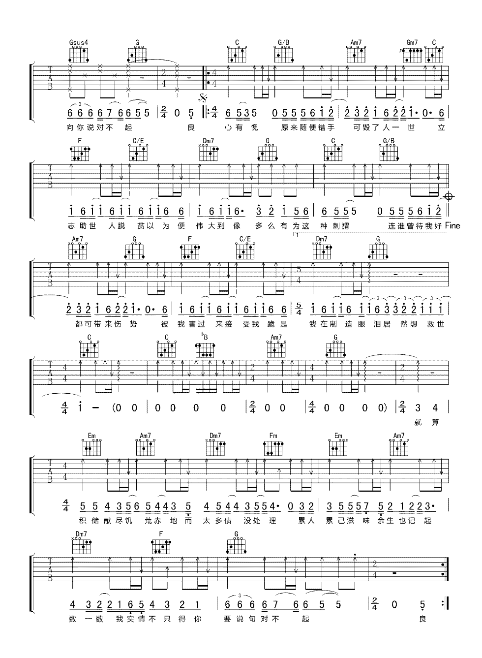 于心有愧吉他谱_陈奕迅_C调弹唱谱_六线谱 时间:2021-05-26 来源:网络 点击:次 《于心有愧》吉他谱,陈奕迅的一首粤语歌曲,唱出内心的挣扎苦闷。于心有愧六线谱,原调降E选用C调指法,变调夹夹三品,三张图片谱例。 一首可以脑补出三万字虐文的粤语歌。有些大开大合的嘲讽,关于年少轻狂和自以为是的爱情,有些幡然醒悟的感觉在里面,同样也很喜欢这首歌的旋律。